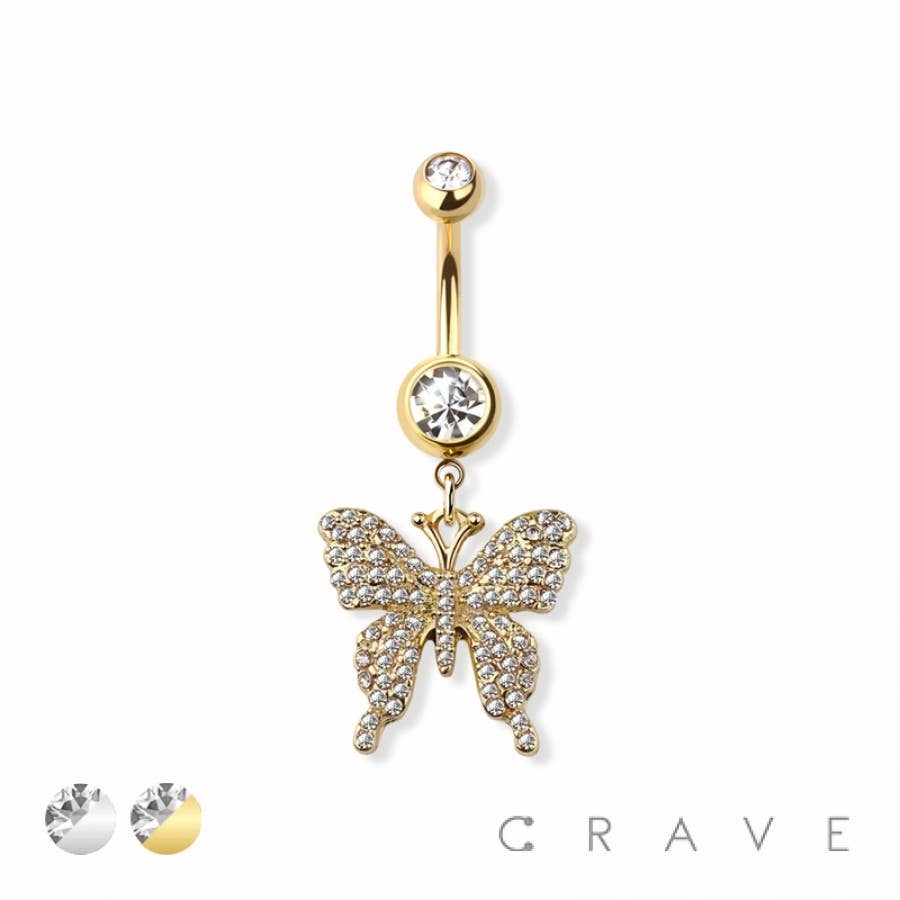 EDELSTEEN VLINDER BENGELEN 316L CHIRURGISCH STALEN NAVELRING