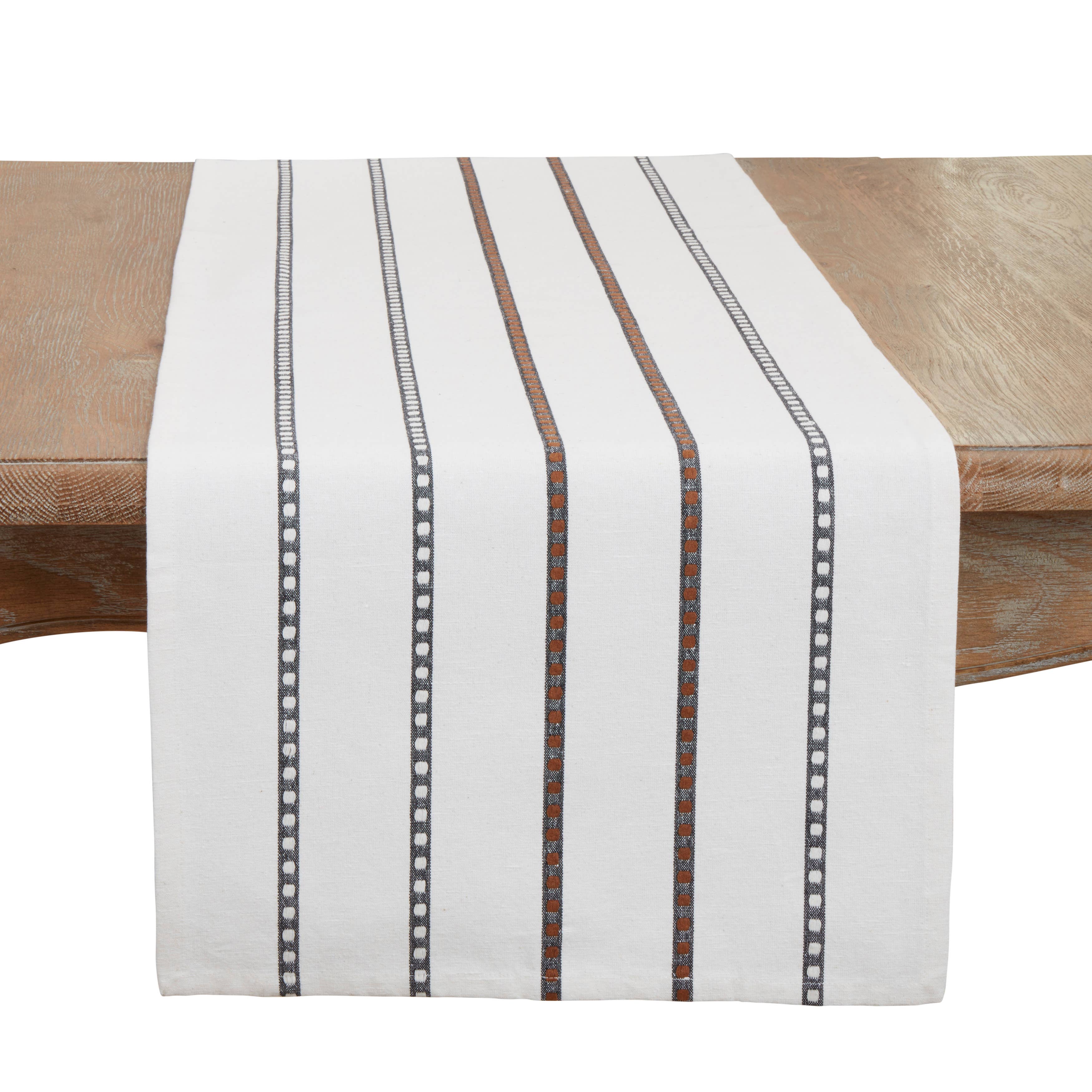 Verkocht per 1 stuk; Geprijsd per stuk Beschrijving: De tafelloper met streepdesign is een veelzijdige keuze voor uw eetkamerdecor, gemakkelijk aan te kleden voor het ontvangen van gasten of eenvoudig te houden voor familiediners. Het brengt textuur naar de tafel en zorgt voor een prachtig contrast. U kunt de loper combineren met effen kleuren binnen hetzelfde palet of met neutrale tinten voor een harmonieus effect. Seizoen: Elke dag. Materiaal: 60% Katoen - 40% Polyester Onderhoudsinstructies: Apart met de hand wassen in warm water