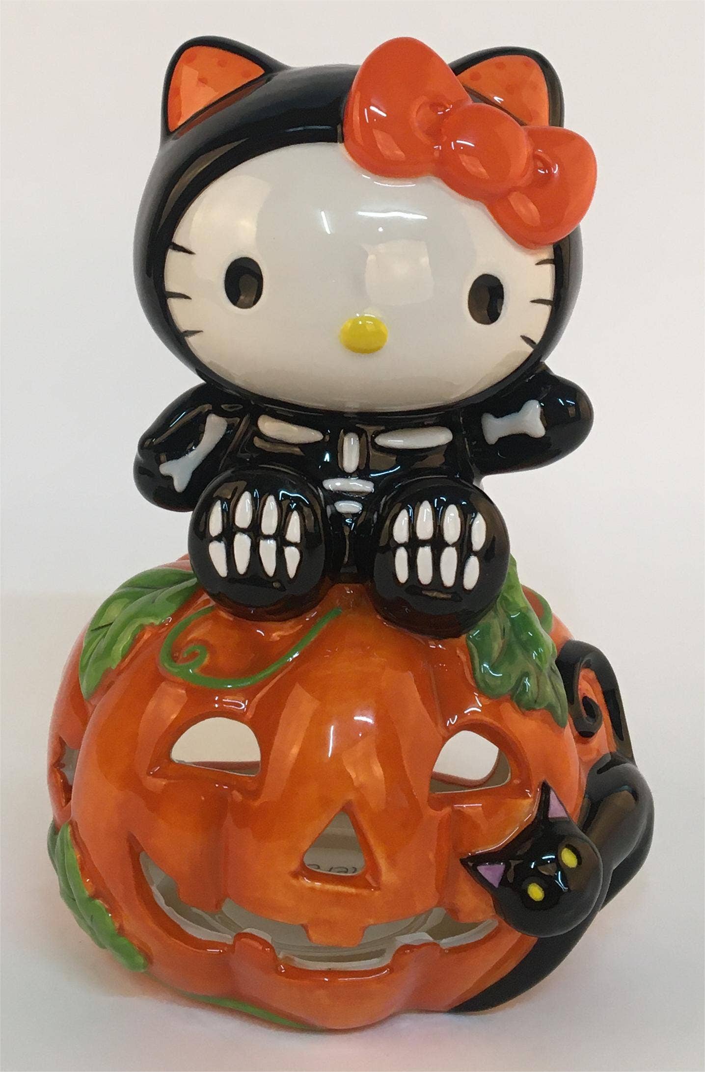 Verlicht je ruimte met de speelse Hello Kitty Halloween Theelichthouder van Blue Sky Clayworks. Met de hand vervaardigd met fijne details, brengt deze houder sfeer en charme in elke kamer. Bereid je voor op een schattige maar toch griezelige ambiance. Beperkte voorraad Kaars niet inbegrepen Afmetingen: 10,8 cm x 10,2 cm x 17,1 cm