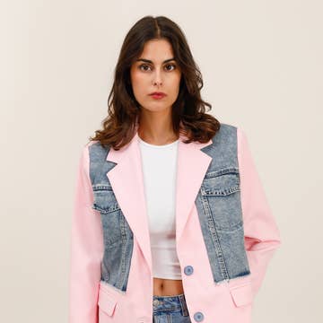 98% Katoen, 2% Spandex Gemaakt in Canada Stof uit Brazilië Dubbele riemgespen tillen deze klassieke, getailleerde blazerstijl naar een hoger niveau met een opvallende print. Ziet er goed uit open met de riemen aan de achterkant vastgebonden of gesloten zoals afgebeeld. Ingesneden revers Zakken