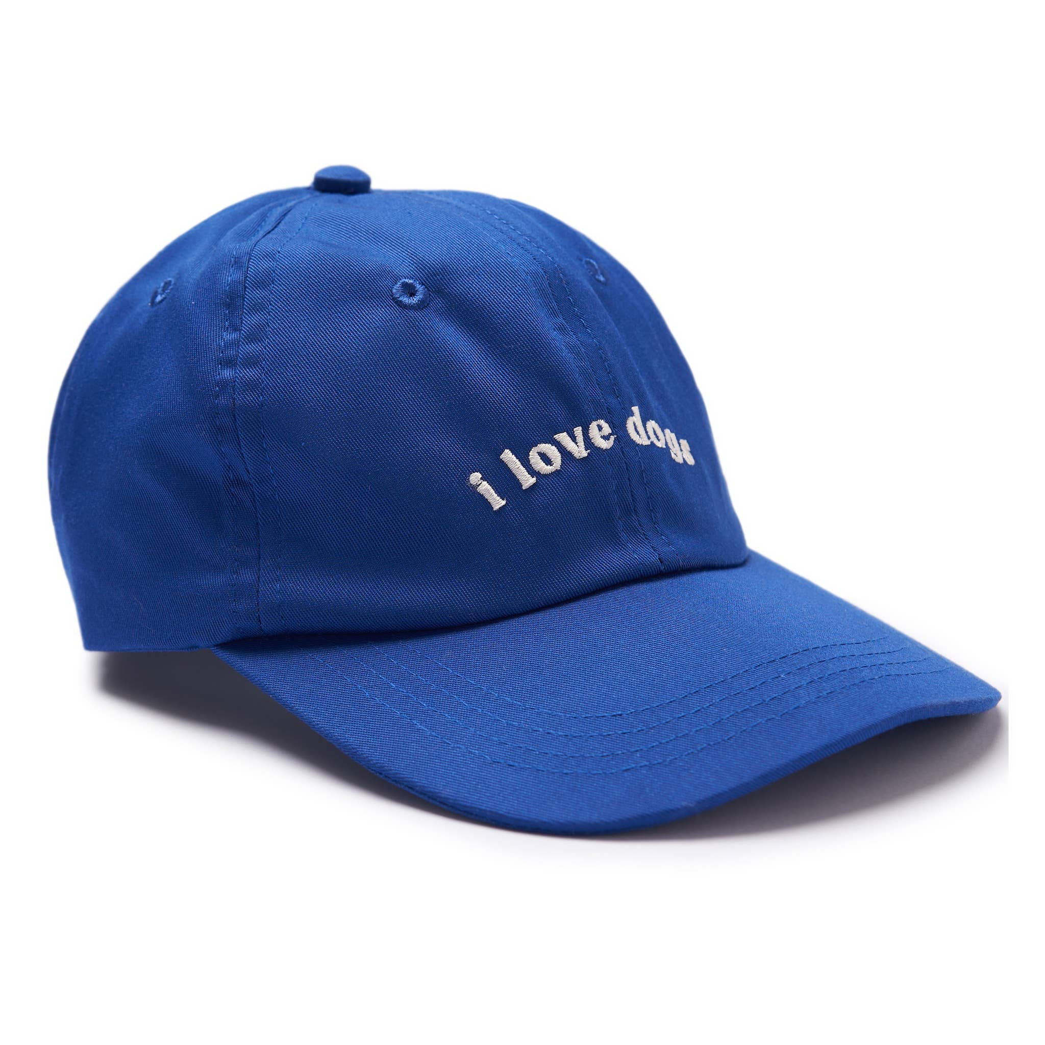 ik hou van honden - Blauw Pet voor kinderen Verstelbare maat voor kinderen van 5-12 jaar Geborduurde tekst: ik hou van honden *De ~ i love dogs pet ~ is verkrijgbaar in kindermaat (blauw of roze) en in de maat voor volwassenen (wit met beige tekst) Dit zijn kleine serieproducties van The Paws.