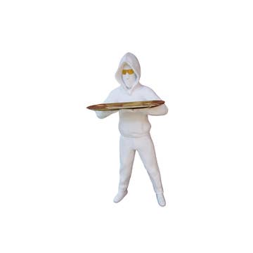 Vaak aangeduid als een vruchtbaarheidspop, drukken deze beelden onze individuele kracht uit en trekken wat we het meest nodig hebben in onze kern. Handgemaakt in Ghana, elk stuk draagt een eenvoudige kralenketting voor vreugde, houdt zijn armen open om te verwelkomen wat we nodig hebben, en staat recht en lang voor moed en kracht. Het voorhoofd heeft een handgehamerde metalen overlay met de Ashanti „Gye Nyame” („jin-ya-may”) Adinkra-symbool dat onze verbinding is met hogere bron, of „Eén God”. Meten van 24" hoog, met een 4" basis