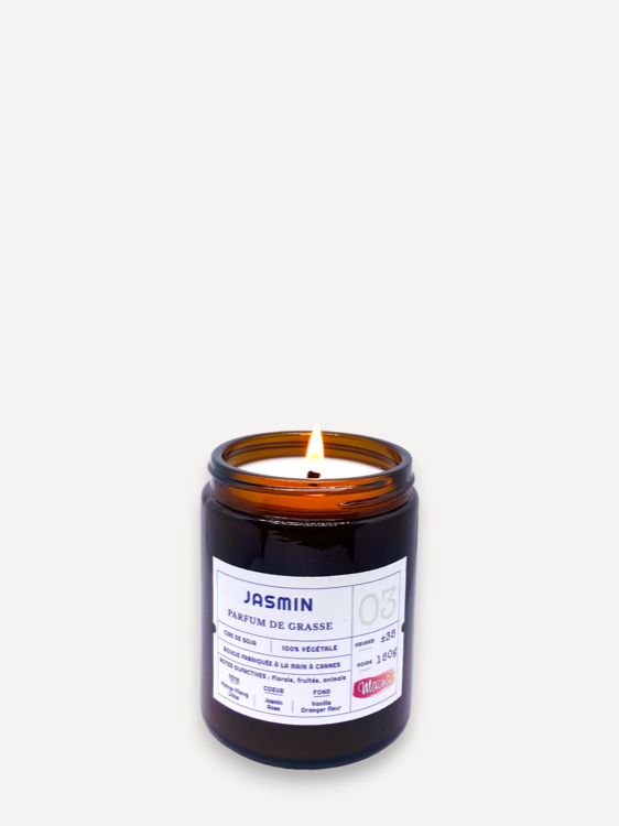 Laat je verleiden door de One Line-trend en geef toe aan de charme van onze Miss Jasmine-kaars. Met zijn strakke lijnen, zijn zachte kleuren en zijn heerlijke jasmijngeur weet deze kaars zijn stijl op te leggen en wordt hij een must in je decoratie, je zult het zien! Ontdek snel de 2 andere kaarsen die deel uitmaken van deze collectie gewijd aan vrouwelijkheid: Miss Rose en Miss Lilas. Onze kaarsen zijn volledig handgemaakt in ons atelier in Cannes. We hechten veel belang aan de samenstelling van onze kaarsen, daarom is onze was 100% plantaardig en zijn onze geuren gegarandeerd CMR-vrij om de kwaliteit van uw interieur te behouden. Olfactorische noten: bloemig, fruitig, dierlijk Topnoten: ylang-ylang, lila Hartnoten: jasmijn, roos Basisnoten: vanille, oranjebloesem