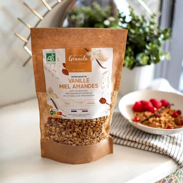 Ingrediënten: Gecertificeerde glutenvrije havervlokken, geperste koolzaadolie, biologische ahornsiroop, ongezoete kokosvlokken, biologische ruwe suiker, cacaopoeder, biologische lavendelbloemen, vanille-extract Bevat kokosnoot