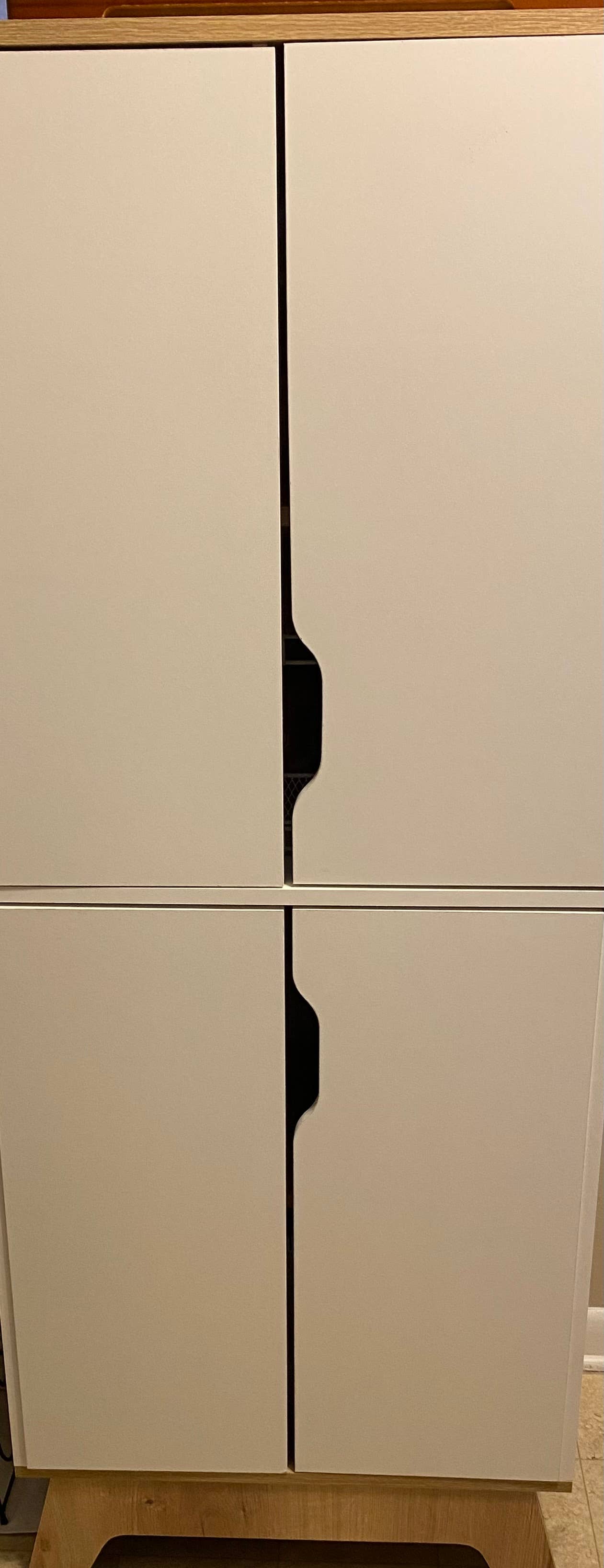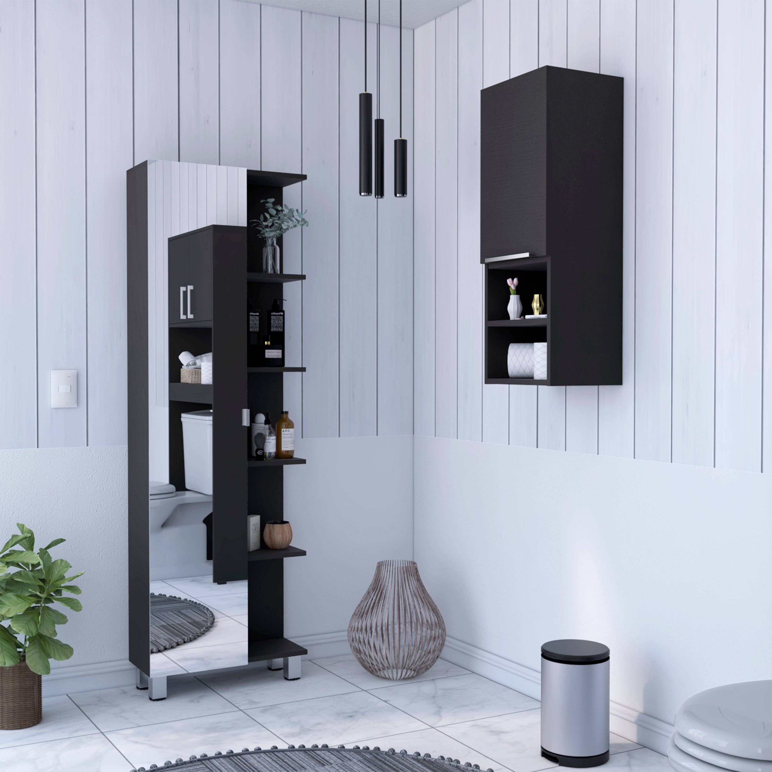 Ze zijn allebei superklein. De kast met de spiegel staat niet op zichzelf; door de spiegel toe te voegen viel hij om. Moet aan de muur worden bevestigd om te gebruiken.