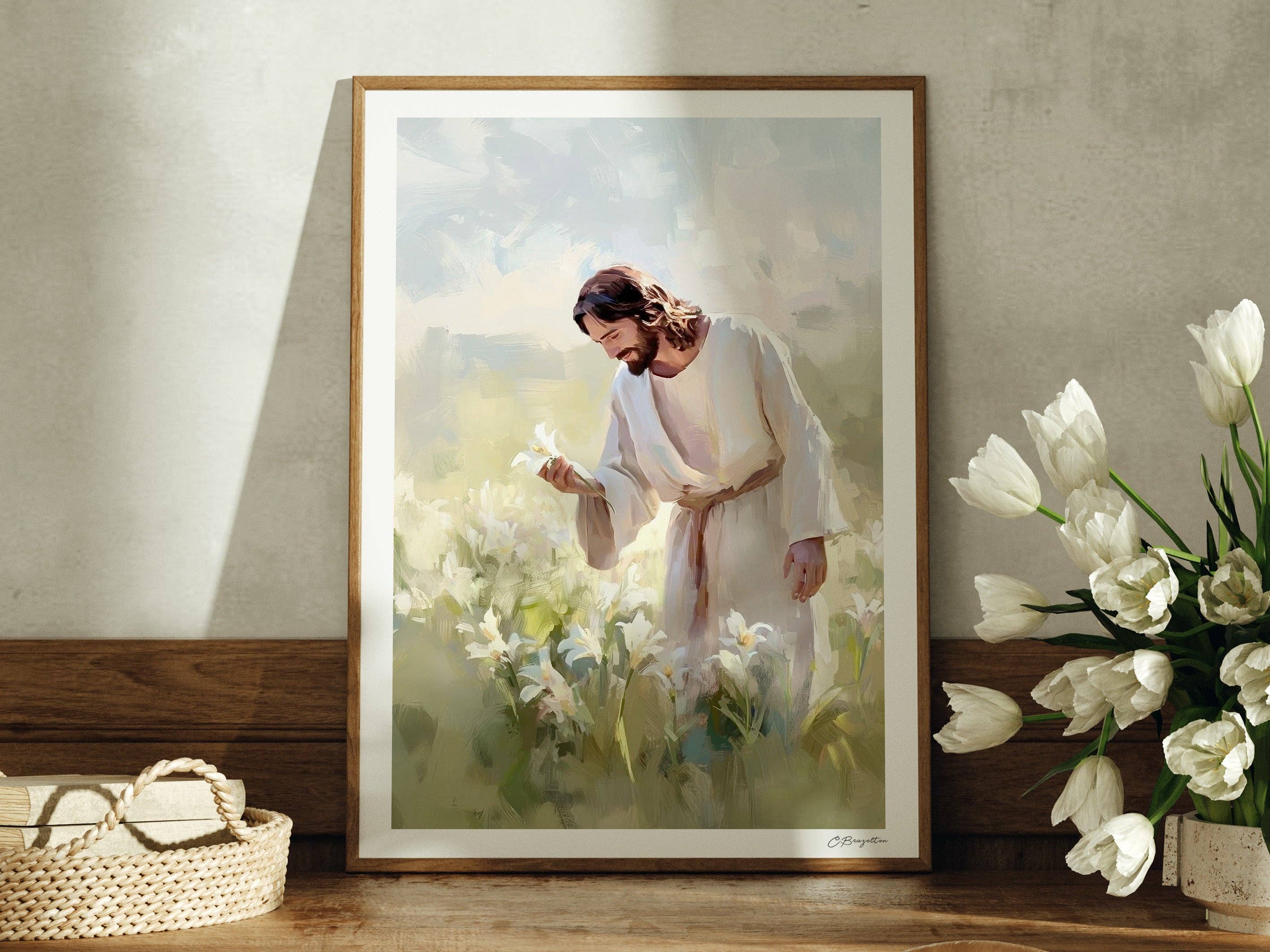 Elk van deze prints is met zorg met de hand gemaakt door de oorspronkelijke kunstenaar. Ik gebruik papier van museumkwaliteit en duurzame inkten om ervoor te zorgen dat de kleuren en details net zo mooi zijn als de boodschap die ze delen. Elke print is persoonlijk gesigneerd en gemaakt in mijn studio, waardoor het een speciaal kunstwerk is om het licht van de Verlosser in uw huis te brengen. Zorg ervoor dat u hieronder kijkt om meer te weten te komen over het verhaal achter de kunst, verzorgingsinstructies en aanvullende details! "Mijn Verlosser Leeft" originele kunst geïnspireerd door Johannes 20:15-18. Verhaal Achter de Kunst Tranen vervaagden de ogen van Maria Magdalena terwijl ze buiten het lege graf stond. Ze dacht dat alles verloren was—totdat ze een stem haar naam hoorde roepen. Op dat moment veranderde verdriet in vreugde. Geïnspireerd door Johannes 20:15-18, toont "Mijn Verlosser Leeft" het ontzagwekkende moment waarop Maria Magdalena de opgestane Christus voor het eerst herkende. Dit stuk leert ons dat Jezus leeft, en omdat Hij leeft, is hoop nooit verloren. Een van mijn favoriete elementen van "Mijn Verlosser Leeft" is de uitdrukking op Maria's gezicht. Haar verbazing en eerbied vertegenwoordigen de emoties die we allemaal voelen wanneer we de Verlosser in ons eigen leven herkennen. Ik hou ook van de manier waarop het ochtendzonlicht zachtjes de figuur van de Verlosser verlicht, wat symbool staat voor het nieuwe leven en de eeuwige hoop die in Zijn opstanding te vinden zijn. Toen ik aan dit stuk werkte, herinnerde ik me mijn eigen momenten van twijfel en verdriet—tijden waarin ik me verloren voelde, om alleen te beseffen dat de Verlosser al die tijd dichtbij was. Op dezelfde manier waarop Hij Maria bij naam riep, roept Hij ons allemaal, en biedt liefde, vrede en verlossing. Zijn opstanding is een belofte dat ook wij alle dingen kunnen overwinnen door Hem. Stel je "Mijn Verlosser Leeft" voor in je huis, dat de kracht van Christus' overwinning op de dood en Zijn persoonlijke liefde voor jou en je gezin verkondigt. Ik hoop dat het je geloof versterkt en je gezin aanmoedigt. Of het nu voor jezelf is of als een door geloof geïnspireerd geschenk, "Mijn Verlosser Leeft" is de perfecte manier om je getuigenis te delen dat onze Verlosser leeft—en omdat Hij leeft, leeft ook onze hoop. Aanvullende Details * Kunstprints worden oningelijst verzonden. * Verwacht een lichte variatie in kleur, afhankelijk van de weergave-instellingen van je apparaat.