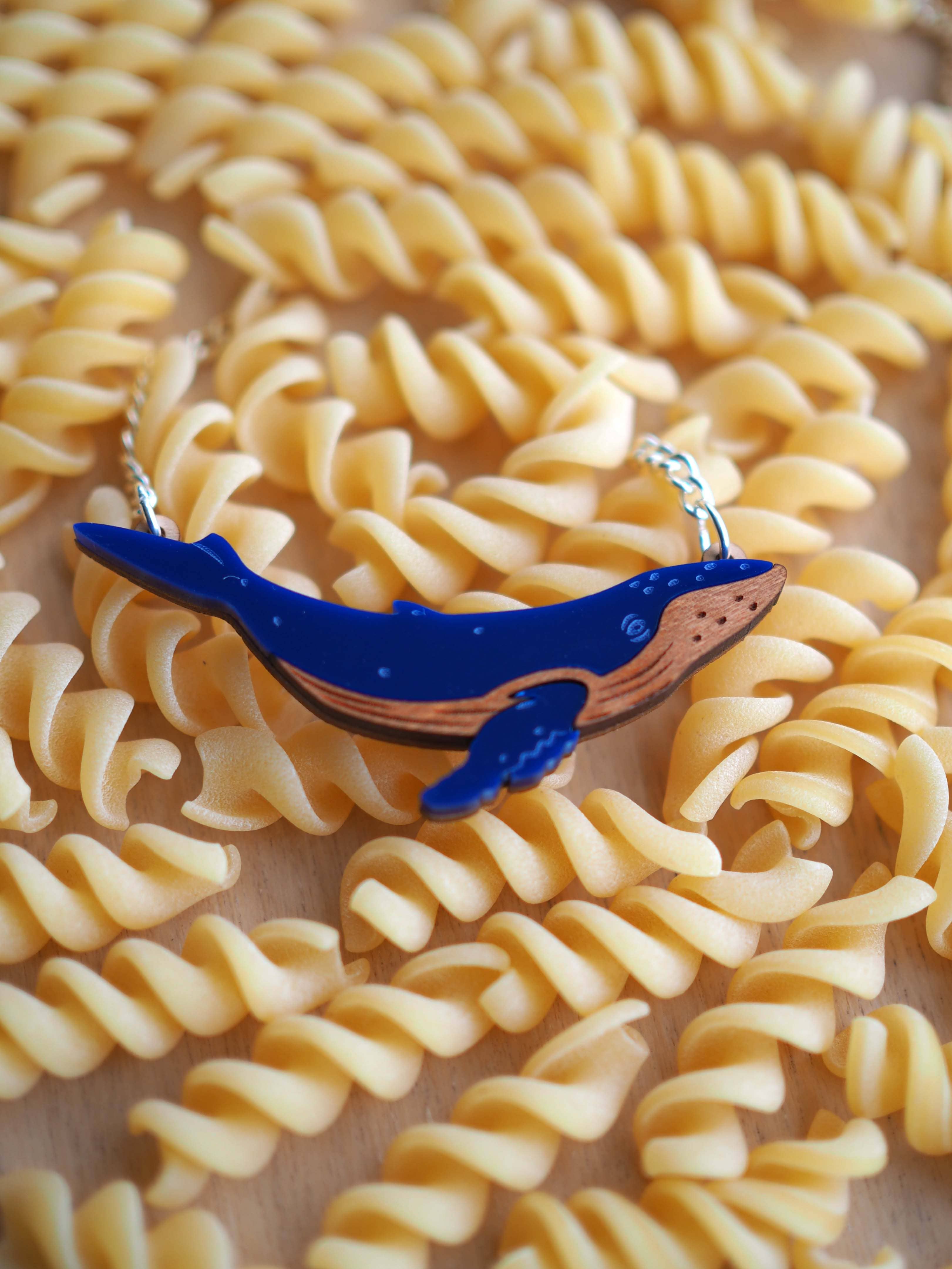 Dit is een blauwe en zilveren narwal op verzilverde sporenketting, het is twee lagen, dus hij is vrij dik maar niet zwaar of ongemakkelijk om te dragen. De designosaur houdt van walvissen. We begonnen met de blauwe vinvis, en toen bleven mensen om een narwal vragen, dus maakten we er een! De narwal zoals de bultrug is gemaakt in een lichte bocht waardoor hij nog eleganter is! Handgetekend en lasergesneden door de designosaur voordat hij door ons in het zonnige Brighton wordt geassembleerd en naar u wordt gestuurd in de geschenkdoos van het merk designosaur. | afmetingen | Hoorn tot staart: 10 cm | 4 1/3" Breedte (breedste punt) 3 cm | 1" Dikte: 0,6 cm | Lengte ketting: 44 cm | 18" (alle inch-afmetingen zijn bij benadering) | meer over ons | DESIGNOSAUR maakt sieraden die het prikkelbare, dinosaurusliefhebbende kind in ons allemaal aanspreken. Onze kenmerkende stukken zijn lasergesneden vertolkingen van dinosaurusskeletten. Ontwerpen zijn te vinden in een aantal boetiekjes en het Natural History Museum, Londen.