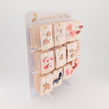 Set van 18 paar geëmailleerde oorbellen van roestvrij staal in verschillende kleuren. De oorbellen zijn waterbestendig, duurzaam en perfect voor klanten die op zoek zijn naar moderne sieraden. Elke set bevat: ✔️ 18 paar geëmailleerde oorbellen (roestvrij staal) ✔️ Wordt geleverd met een displaystandaard van roestvrij staal met een houten basis, inbegrepen bij de set Prijs: 💰 Prijs per paar: €3,30 💼 Totaal voor de set (18 paar + gratis displaystandaard): €59,40 Ideaal voor: - Sieradenwinkels - Conceptstores - Handelaren op markten of pop-up winkels Bied uw klanten een elegant en trendy sieraad, gepresenteerd op een chique standaard die klaar is om te worden getoond!
