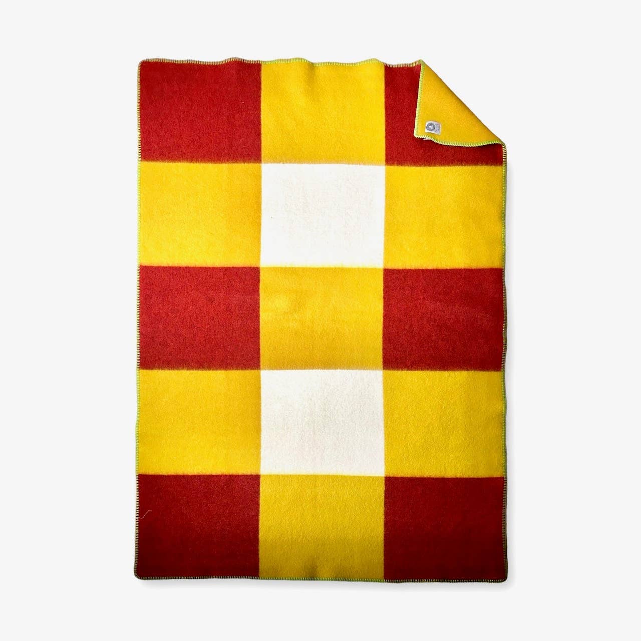 Keerbare plaid van Noorse wol 140x205cm (Tricolor Square) Effen Blauw