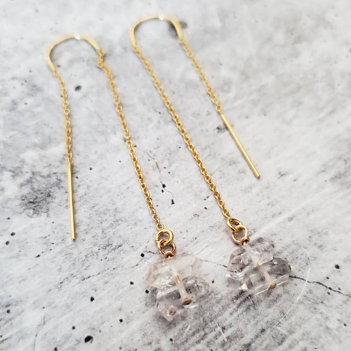 Deze aanbieding is voor een paar mooie ketting franse haak oorbellen met sprankelende Herkimer Diamonds | Deze oorbellen zijn een prachtig cadeau voor de trendy en boho vrouw in je leven | OVER DE SIERADEN | De oorbellen zijn gemaakt van glanzende sterling zilveren ketting en franse haken | Ze zijn sierlijk en delicaat met zeer dunne ketting en elk 2 kristallen | Je hebt de optie om dezelfde oorbellen te krijgen in prachtig sterling zilver, glanzend en helder 14k goud gevuld of 14k roségoud gevuld. Selecteer bij het afrekenen | De oorbellen zijn handgemaakt om voor u te bestellen en een beetje anders vanwege de aard van de kristallen | ONDERHOUDSINSTRUCTIES | Het wordt niet aanbevolen om te slapen, douchen, zwemmen of sporten in uw handgemaakte sieraden | Door uw ketting uit het water te houden, wordt de levensduur van de sieraden.
