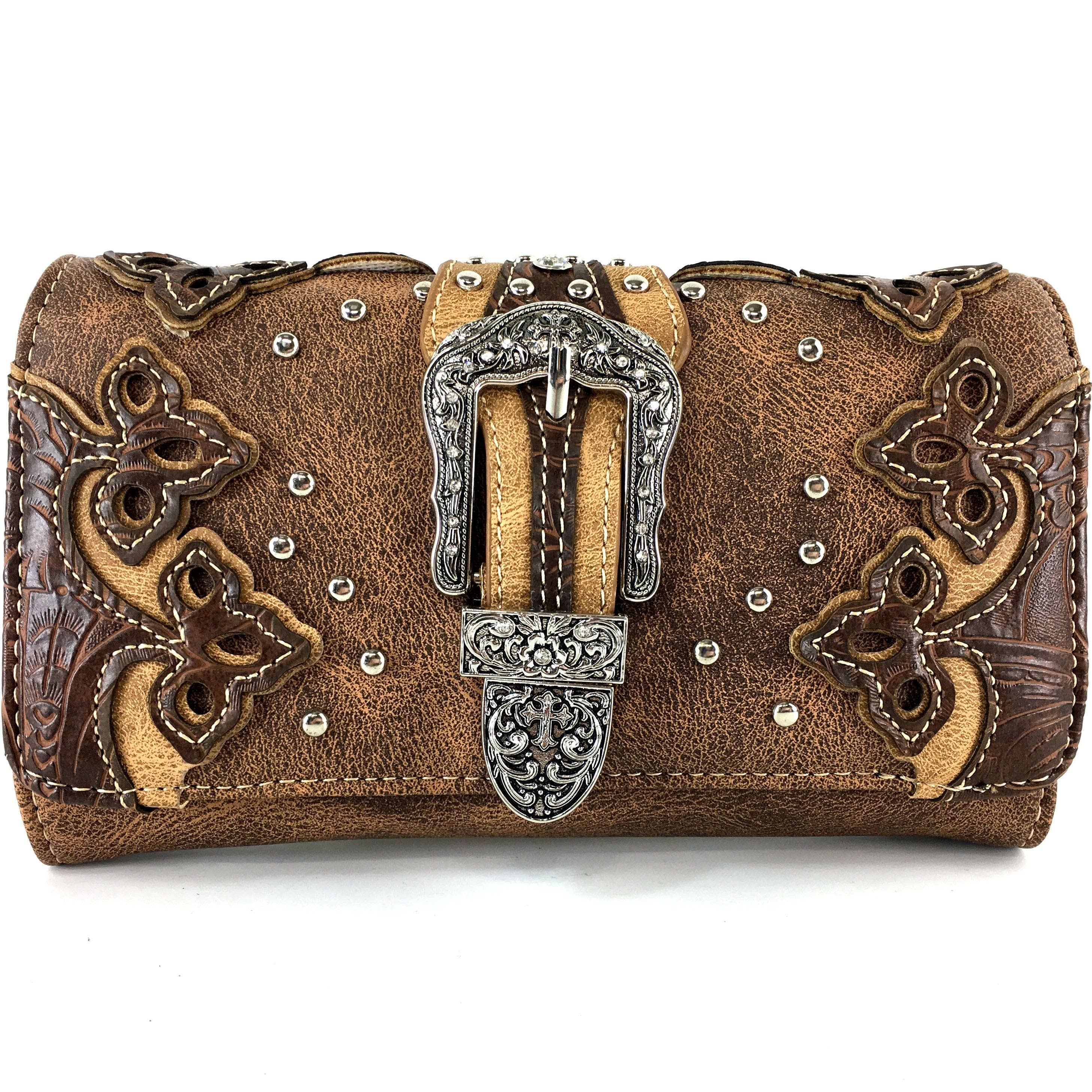 Dames portemonnee met western bloemen- en medaillonmotief en crossbodyriem