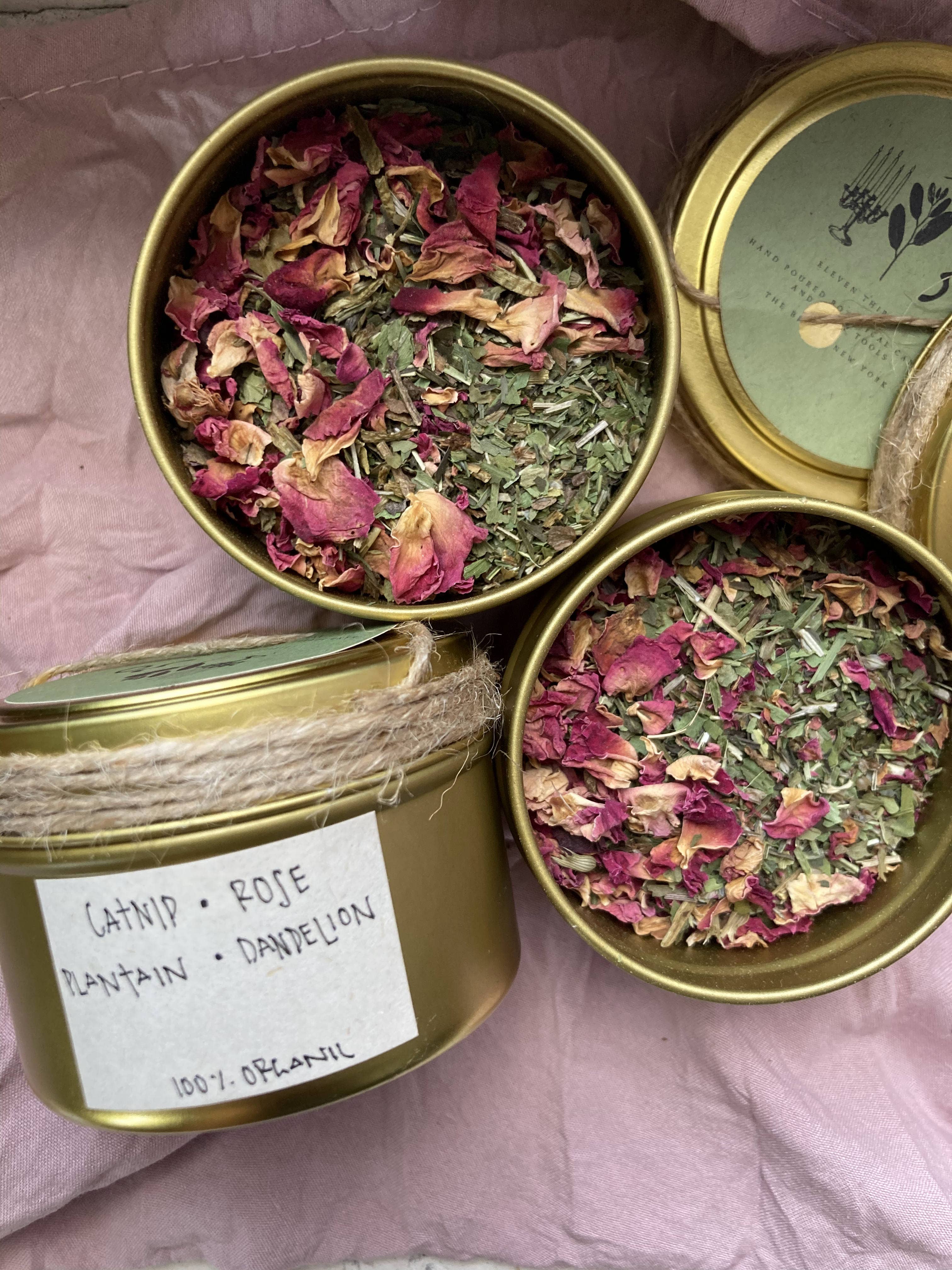 12 gram van de gepatenteerde blend vult 4oz goudblik met slipcover. Slipcover is omwikkeld met jute touw en verzegeld met bio gebaseerde en composteerbare krimpfolie. 2 rechthoekige, natuurlijke suikerriet stickers (composteerbaar en recyclebaar) De ene leest „432 Herbal Blend”, tweede sticker luidt „Paardebloem, Weegbree, Bijvoet, Toorts.” 1 ronde, groene kraftpapiersticker met 1130-logo op de bovenkant van het blik, onderkant van het blik is kaal. Blend bevat 100% biologische paardebloem, weegbree, bijvoet en toorts. Deze mix kan worden gebruikt voor vlekken met een houtskoolschijf, doordrenkt voor thee, toegevoegd aan een kuip voor een ritueel bad of gerookt met andere geneesmiddelen.