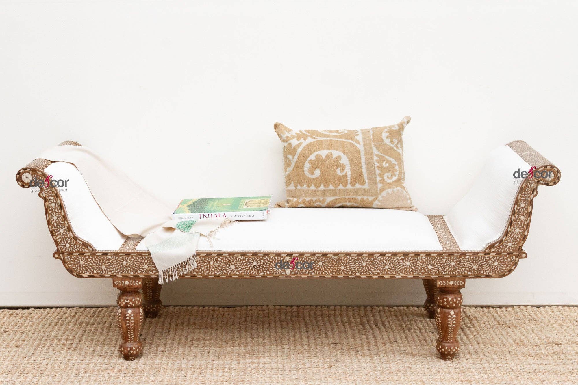 Dit prachtige lounge-dagbed nodigt uit tot zowel ontspanning als gezelligheid. Het is een meesterwerk van handgemaakt comfort en duurzame stijl. Gemaakt van hergebruikt teakhout met een natuurlijke houtafwerking, biedt het dagbed een vleugje Boheemse elegantie en laat het een inzet voor milieuvriendelijk design zien. Zorgvuldig met de hand gesneden details sieren dit dagbed, met een rugleuning waarop een indrukwekkend lineair bloemenpatroon diep is uitgekapt. Dit gebeeldhouwde bloemmotief voegt een speelse toets toe, terwijl de fijne spilvormige details aan de achterzijde de visuele aantrekkingskracht versterken. Vier grote, afgeronde en verwijderbare beentje in de vorm van een bijenkorf maken het geheel compleet, met een vleugje speelsheid en een knipoog naar klassiek design.
