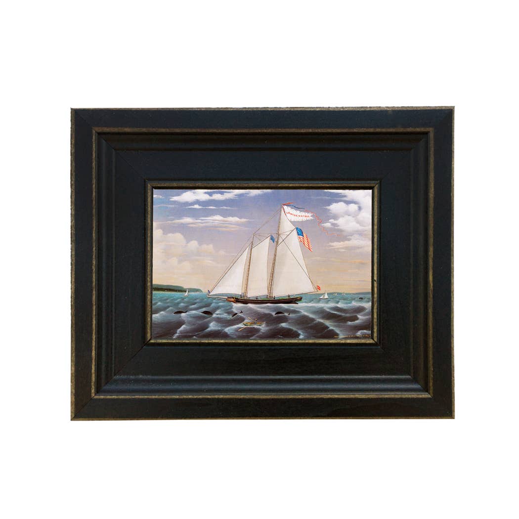 Nauwkeurige reproductie van het originele olieverfschilderij van de Amerikaanse zeeschilder Franklyn Bassford (1857-1897). Deze afbeelding is gedrukt op canvas, bevestigd op een plank en behandeld met een historisch ogende vernis. Het frame is gemaakt van antiek goudhars. De achterkant is afgewerkt met 100% gerecycled knutselpapier en een zaagtandhanger. Gemaakt in de VS. • Schilderij: 5 „x 6" • Afmetingen van het afgewerkte frame: 8-1/2 „x 9-1/2" • Breedte van het frame: 2" • Framedikte: 1" Opmerking: Deze print is mogelijk verkrijgbaar in verschillende maten en kaders. Neem contact met ons op voor meer informatie.