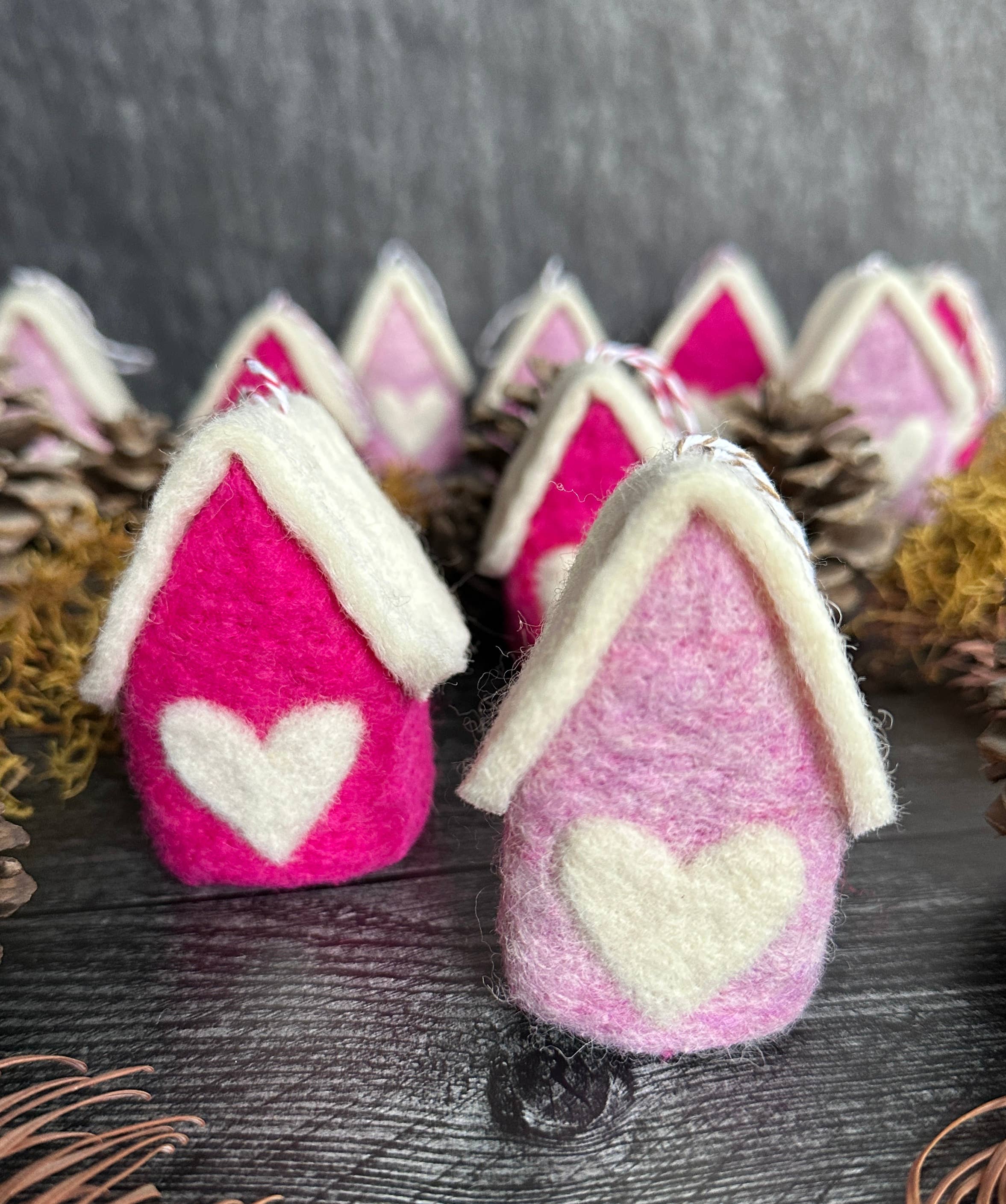 Deze aanbieding is voor één (1) versierde ronde ornament. Deze ornamenten zijn verkrijgbaar in verschillende unieke kleurenschema's en stijlen om je eigen collectie te mixen en matchen! Elk is ongeveer 2"-2,5" in doorsnee, 1 inch dik. Hun grootte varieert enigszins, wat zorgt voor een meer rustieke, handgevormde uitstraling. Gevilt van wol, elk hangt aan een lus van katoenen touw. Sommige motieven zijn met katoendraad in de wol genaaid. Klanten zijn dol op deze voor lerarencadeaus, werknemerscadeaus, Valentijnsdagdecoratie, Galentine's Day-cadeaus en natuurlijk kerstornamenten! Details: • Als het beschikbaar is om in je winkelwagen te plaatsen, is het op voorraad en klaar om te verzenden • Wolconstructie met katoenen touw • Cirkelgrootte: ca. 2-2,5” in grootte (elk is enigszins uniek) • Niet voor kinderen onder de 3 jaar (verstikkingsgevaar) • Gewicht: 10-12 g