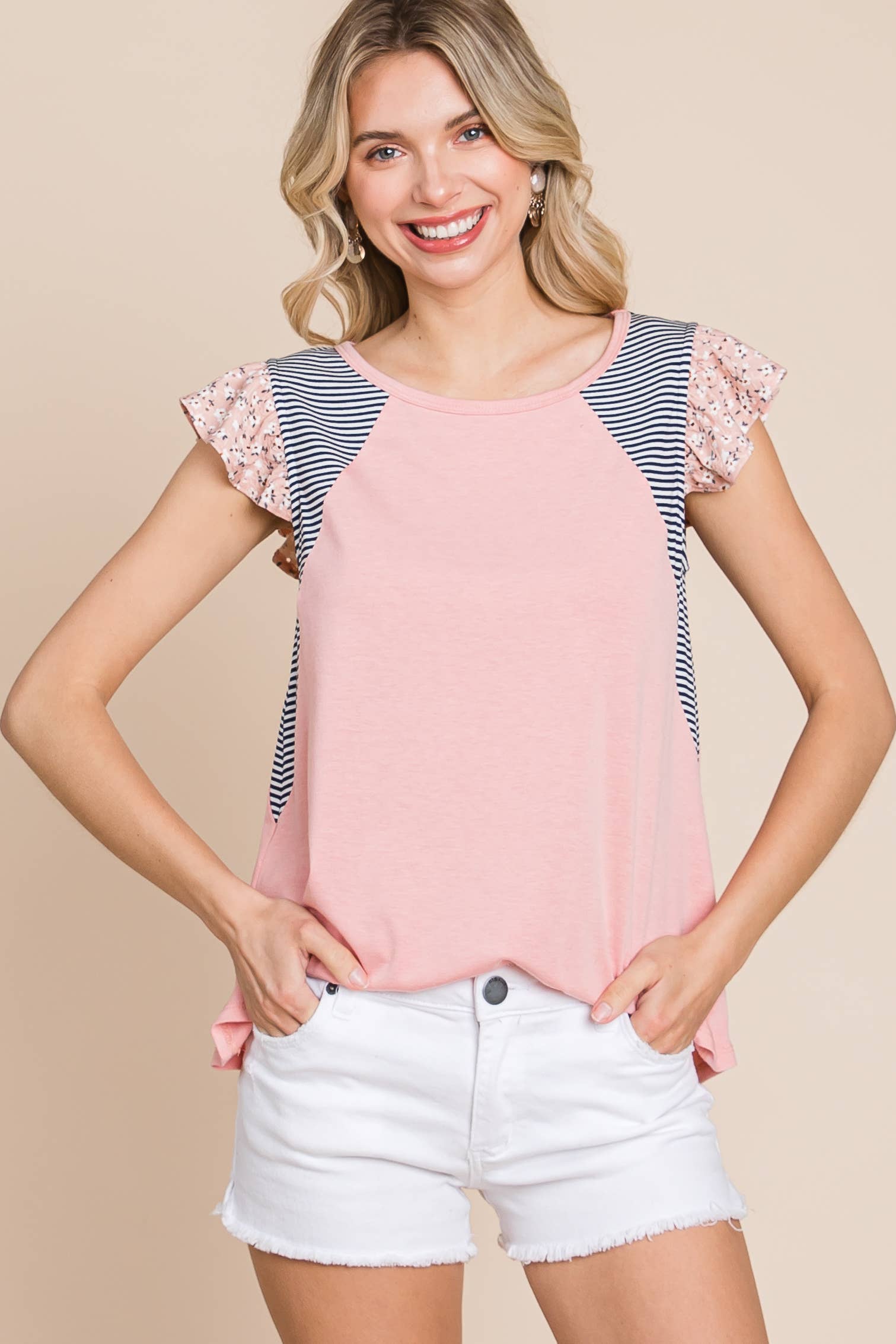 Effen tuniektop met uitgesneden halslijn en flutter mouwen 95% rayon 5% spandex