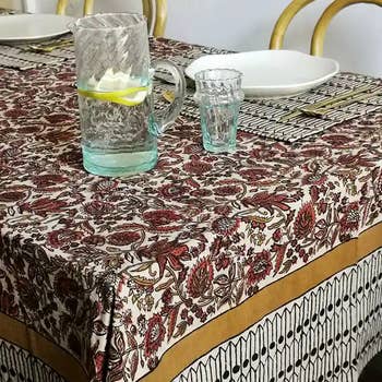 Ons tafelkleed met vismotief is gemaakt van zacht 100% katoen en handmatig bedrukt met blokdruk door vakmensen in Rajasthan, India, met gebruik van handgesneden houten blokken. Het vergt veel vaardigheid en precisie om deze fijne blokdrukken te maken. Door de natuurlijke variaties die optreden bij handbedrukte stoffen, krijgt elk stuk een unieke, authentieke uitstraling. Deze fairtrade tafelkleden kunnen ook gebruikt worden als tweepersoons sprei en er zijn bijpassende servetsets en tafellopers verkrijgbaar. Onze katoenen tafellinnen is wasmachinebestendig en toont de prachtige blokdruktradities van India met milieuvriendelijke verven. Servetten worden apart verkocht. Afmetingen: 152 cm x 229 cm.