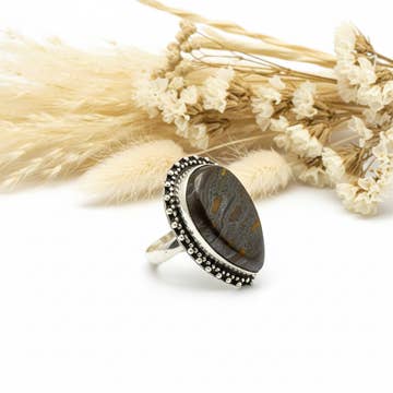 Sculpturale statement ring handgemaakt van 100% gerecycled aluminium, dik, rustiek en milieuvriendelijk, maat S, M, L