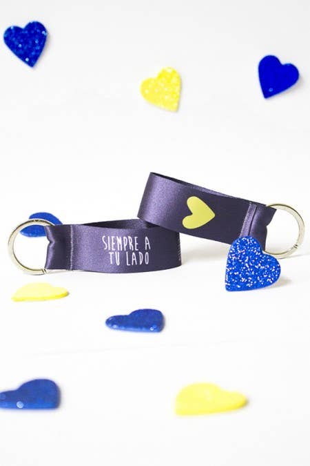 Met de Forbidden to surrender sleutelhanger zul je elke keer dat je je sleutels oppakt onthouden dat je nooit kunt opgeven, want elke inspanning heeft zijn beloning. Kenmerken van de sleutelhanger - Polyester stof - Afdrukken van hoge kwaliteit - 2 cm breed x 8,50 lang - Metalen ring - Nationale productie van 100x100 - Exclusief ontwerp van Marronynegro
