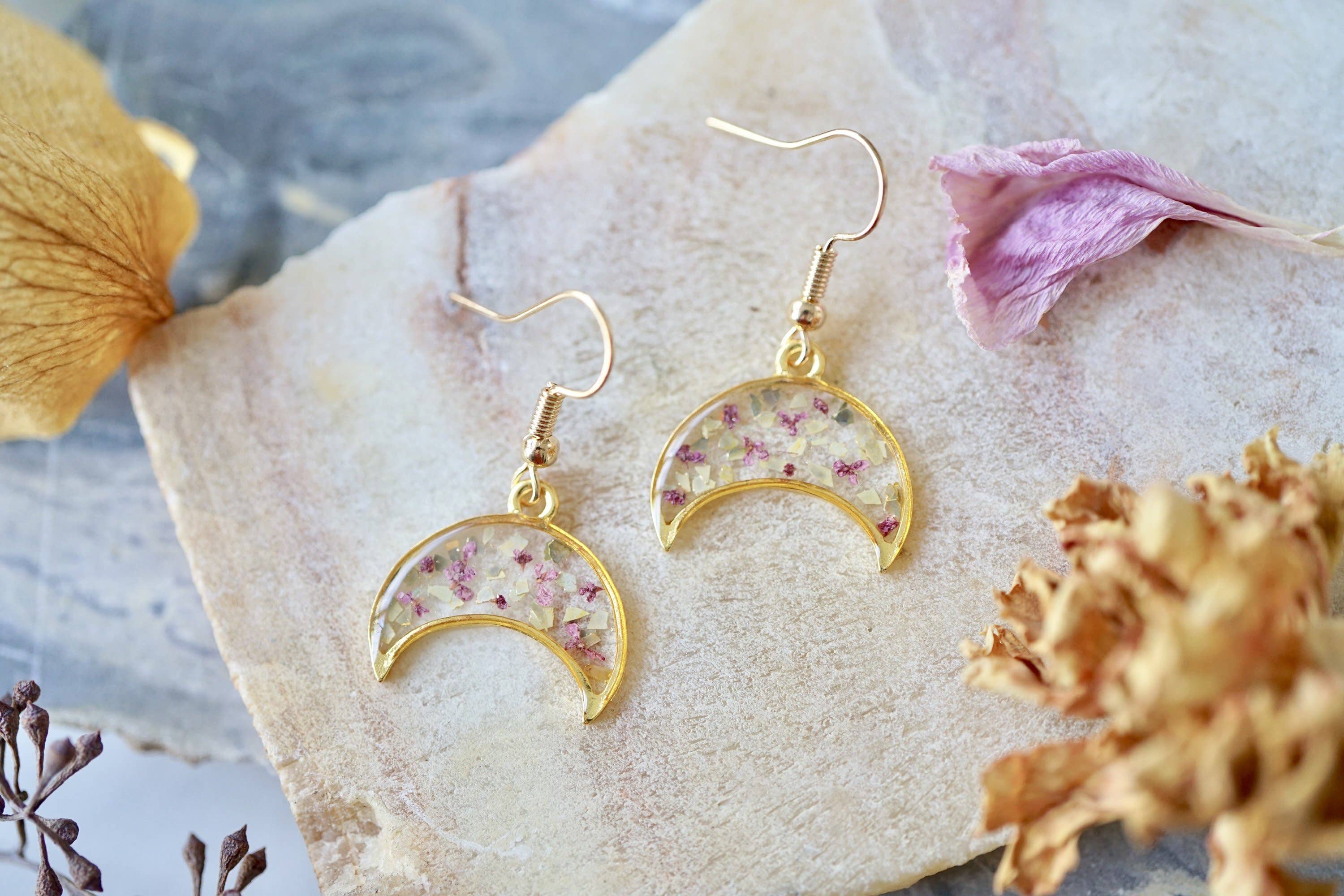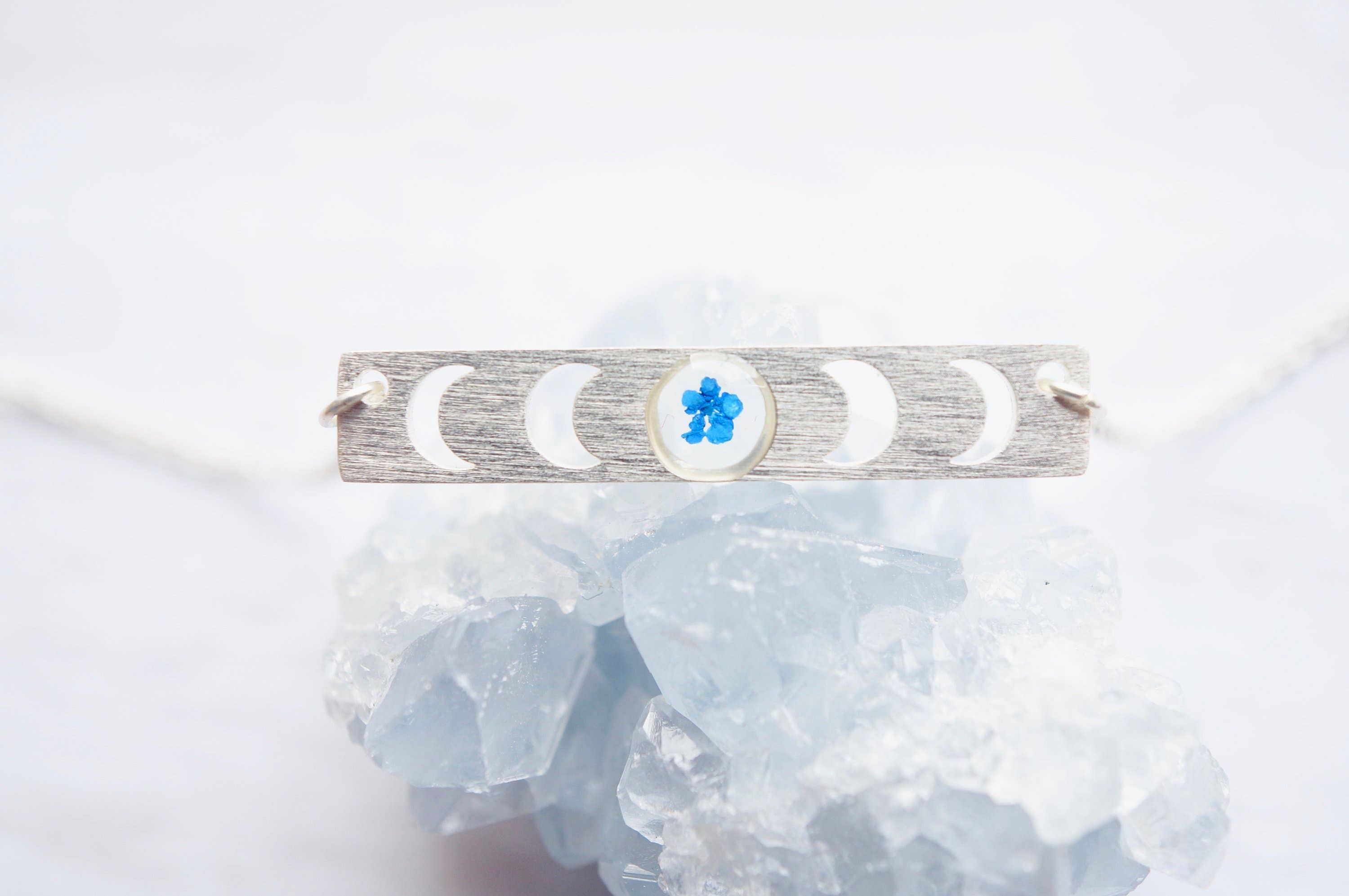 Echte geperste bloemen- en harsring, gouden manen in blauw en groenblauw
