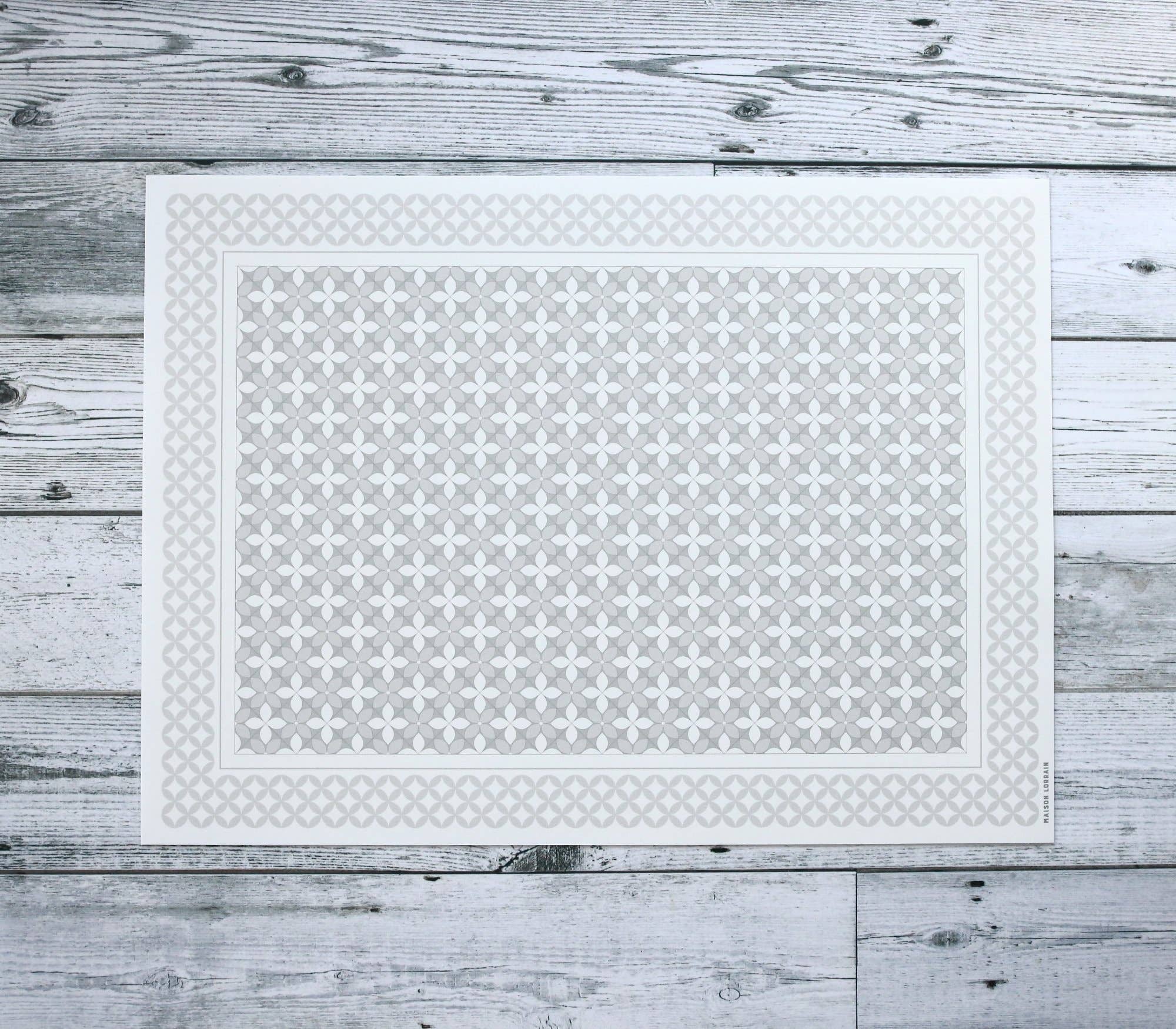 Napperon de Vinyle - Petite Fleur Gris - Small Flower Grey.