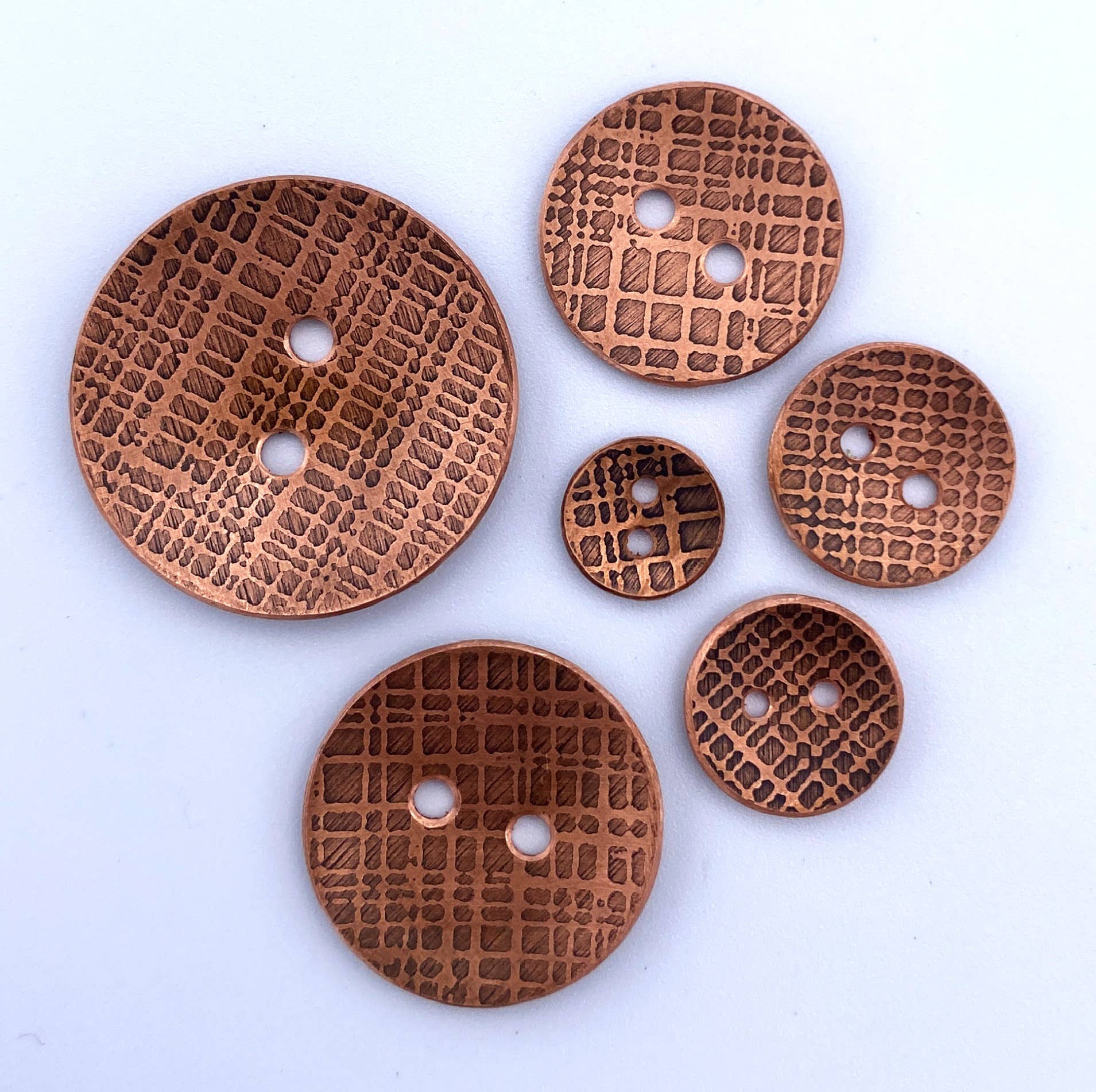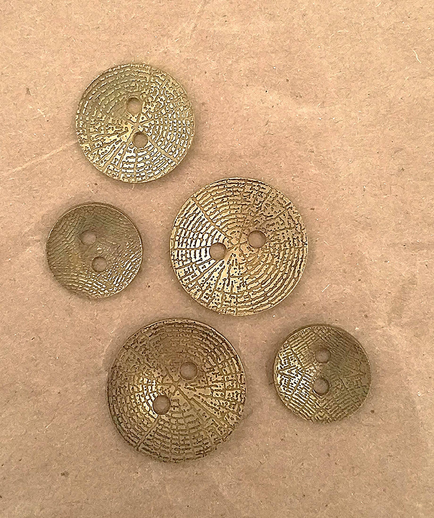 Dit zijn handgemaakte knopen van messing of koper, verkrijgbaar in een 2-gats stijl. Veel maten beschikbaar: 3/8", 1/2", 9/16", 11/16", 13/16", 1" Deze metalen knopen zijn gemaakt van een metalen plaat die ik langzaam heb gepatineerd om het metaal een mooie, verouderde uitstraling te geven. Geen twee knopen zullen dezelfde patina hebben. Wat je op de foto ziet, is een goed voorbeeld van wat je zult ontvangen. Alle afbeeldingen die je ziet, geven je een goed idee van de ontwerpvariatie onder mijn knopen. Deze knopen zijn licht gebogen om hun functionaliteit te vergroten. Al het metaal dat ik gebruik is loodvrij en van juwelierskwaliteit. Ik gebruik geen agressieve commerciële verouderingsmiddelen in mijn proces. Als het niet natuurlijk veroudert, gebruik ik de kracht van azijn en/of hitte! Bij het etsen gebruik ik een elektrische stroom om mijn platen te etsen. Er wordt geen zuur gebruikt in dit proces. Het etsbad dat ik gebruik, gaat een leven lang mee, in tegenstelling tot zuur dat goed is voor één keer gebruik en daarna giftig is. Ik ben zo milieuvriendelijk mogelijk in mijn metaalbewerkingsproces.