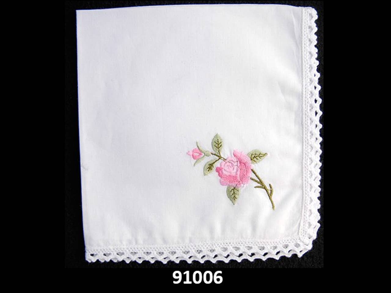 100% katoen. Geborduurde lavendelspray. Met kant afgewerkt.