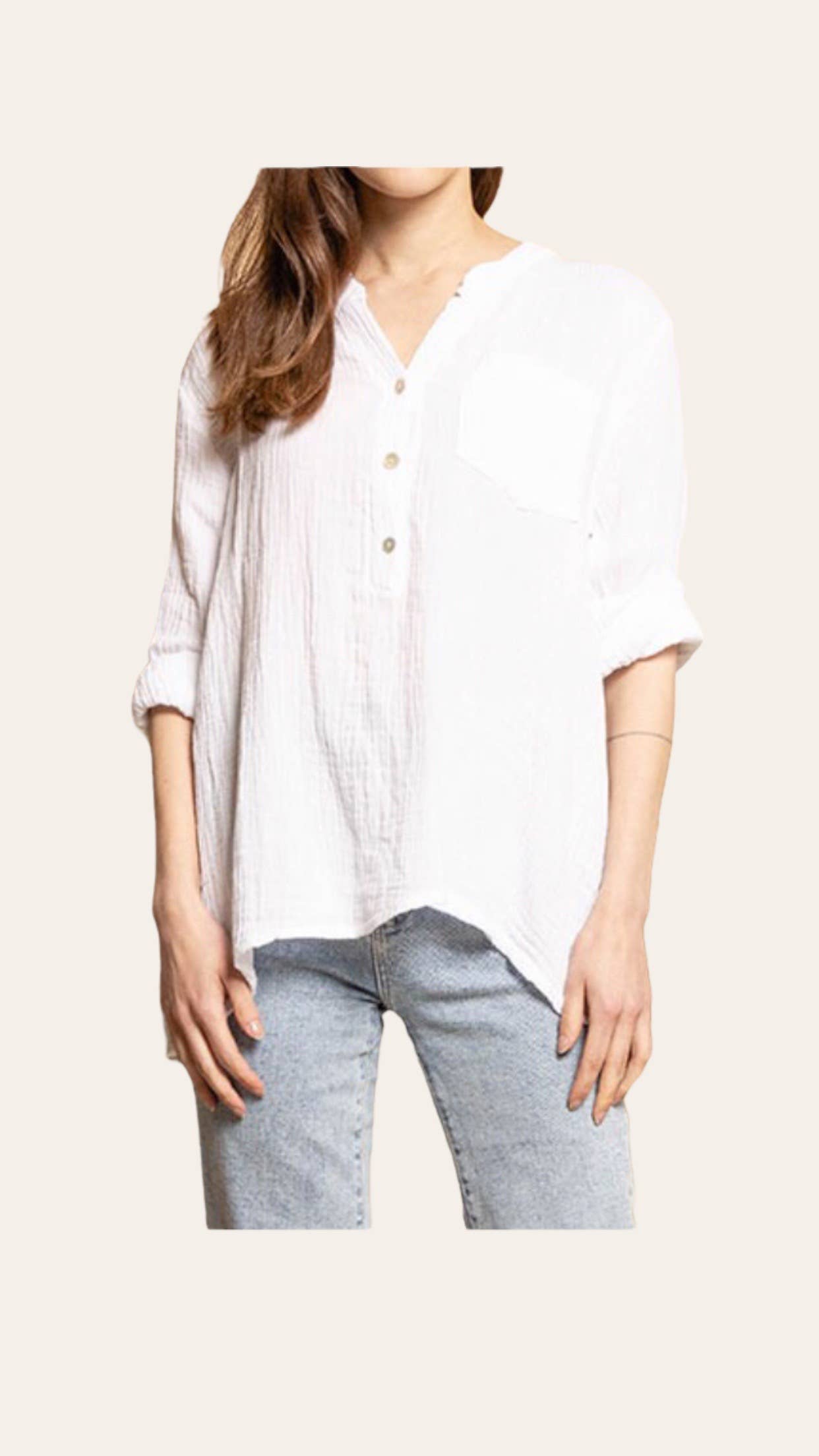 #80641 katoenen gauze overhemd met recht kraag