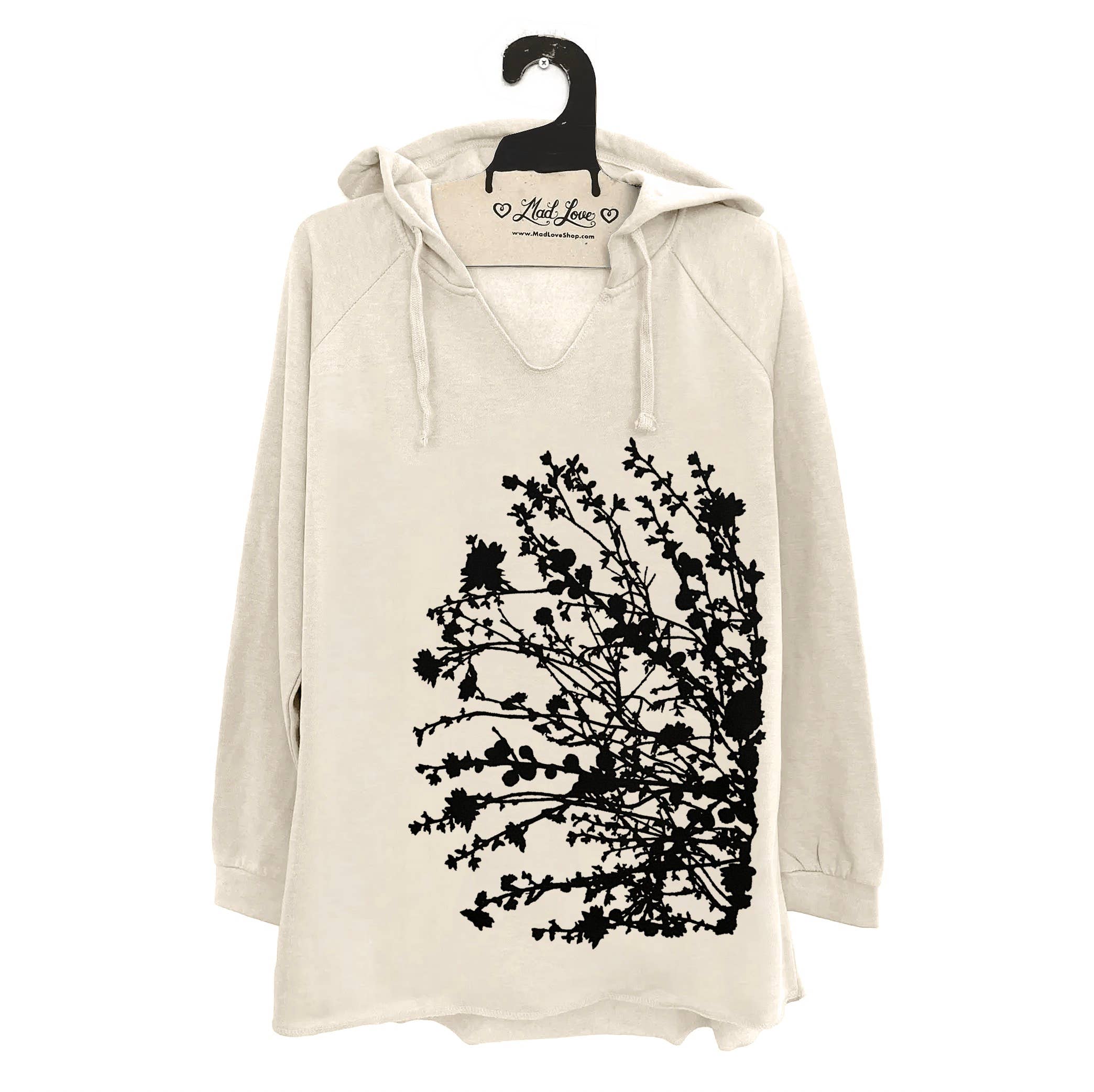 Andere opties beschikbaar, stuur me een bericht. Zwarte strandtuniek van fleece met V-uitsparing en capuchon en Cat Moon Kenmerken: Strandfleecetrui met capuchon voor dames 6,5 oz., 60% katoen/ 40% polyester, gemaakt van strandfleece V-hals met dubbelzijdige deksteek Trekkoord van keperband Raglanmouwen Fijne manchetten met ribbels Gebogen veegnaad met dubbelzijdige deksteek Relaxte silhouet