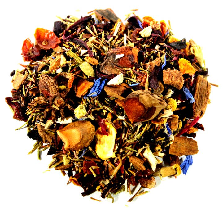 Geniet van de smaak van verse, sappige bramen in deze heldere maar zachte bessentonic. Zwarte thee, gedroogde bramen, bramenblad, goudsbloem en natuurlijke smaakstoffen. Temperatuur: 195. Tijd: 2,5.