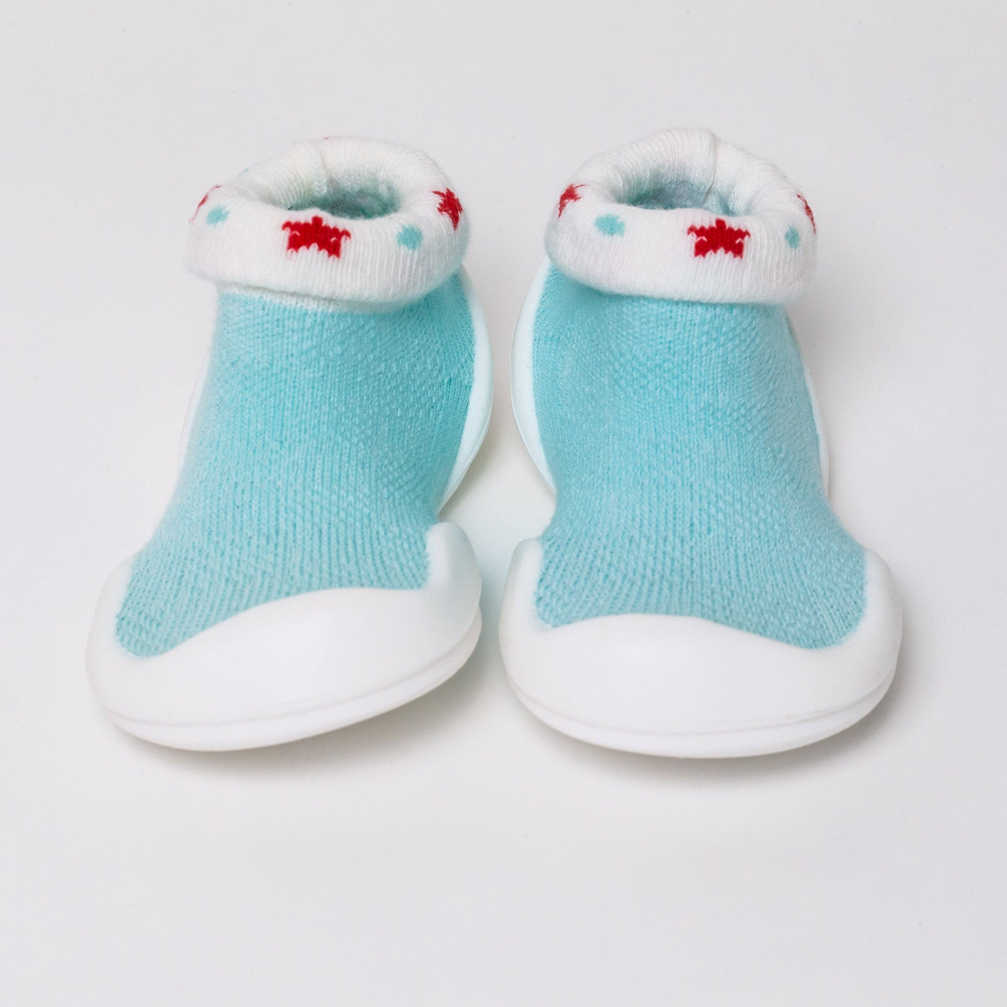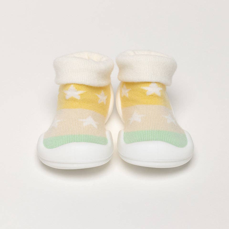 MAXIMAAL COMFORT: Nauwsluitende sok gevormd naar de voetvorm van de baby voor ultiem comfort, pasvorm en beweging ANTISLIP: Ergonomisch ontwerp met flexibiliteit en comfort op blote voeten. Ontworpen met honingraatzolen gemaakt met onze gepatenteerde Go-Shinsâ„¢ ultralichte zachte rubberen zolen gemaakt van 100% TPE (geperste niet-giftige test gecertificeerd) die wordt gebruikt in kinderbijtspeeltjes. LICHTGEWICHT & ADEMEND: Zacht, ademend bovenmateriaal gemaakt van katoen 80%, spandex 18% en lycra 2% voor een getailleerde pasvorm. Inlegzolen gebouwd met TPE-injecties om extra kussen te bieden met luchtdoorlaatbaarheid. NIET GIFTIG EN MILIEUVRIENDELIJK WASBAAR IN DE MACHINE: Wasnet inbegrepen bij elke bestelling. *Alleen aan de lucht*