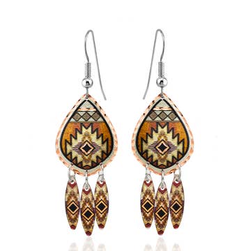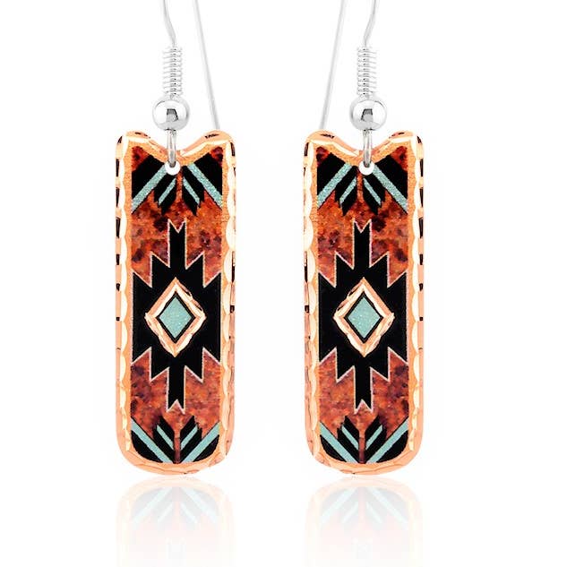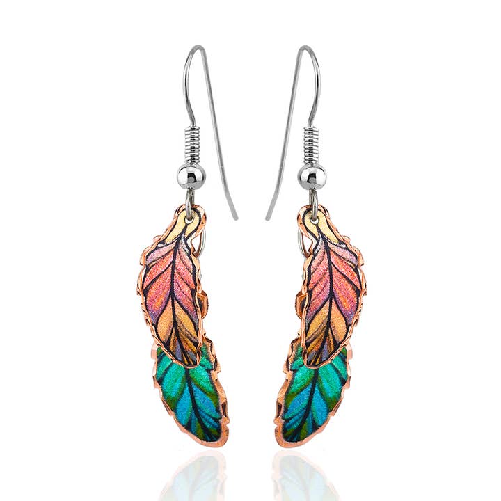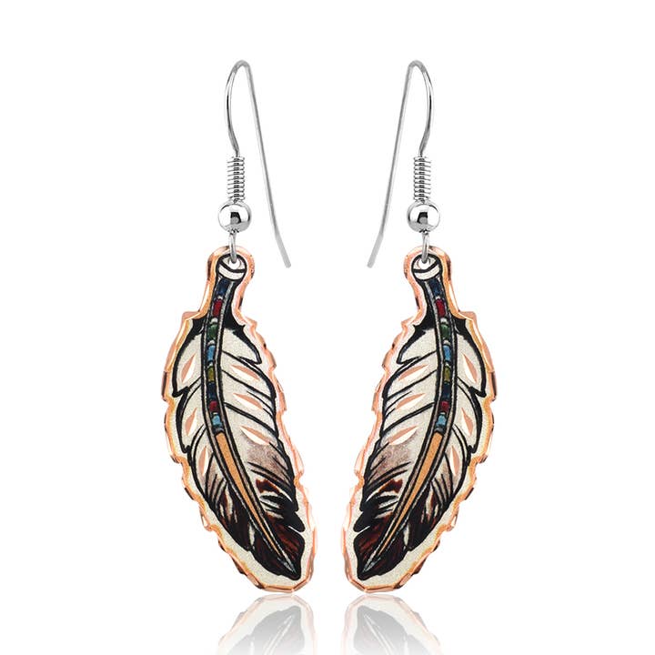 Handgemaakte koperen veeroorbellen Kleurrijke veeroorbellen versierd met kralen. We hebben de inheemse geest vastgelegd in deze prachtige koperen oorbellen.