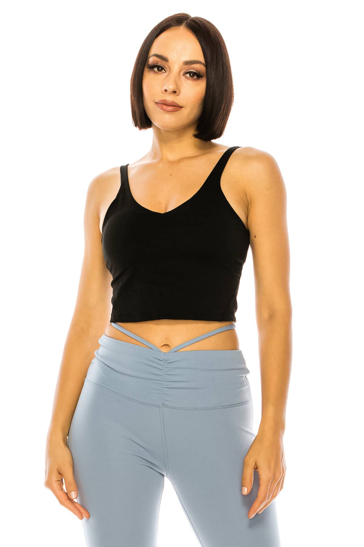 Cropped cami-top met contrasterende bies en activewear-set met dolfijnenshorts. Katoenen lycra-stof. Set van 2 foto's. Getailleerde stijl. 95% katoen 5% spandex. Importeren. Alleen in verpakkingen van 2S, 2M en 2L per kleur.