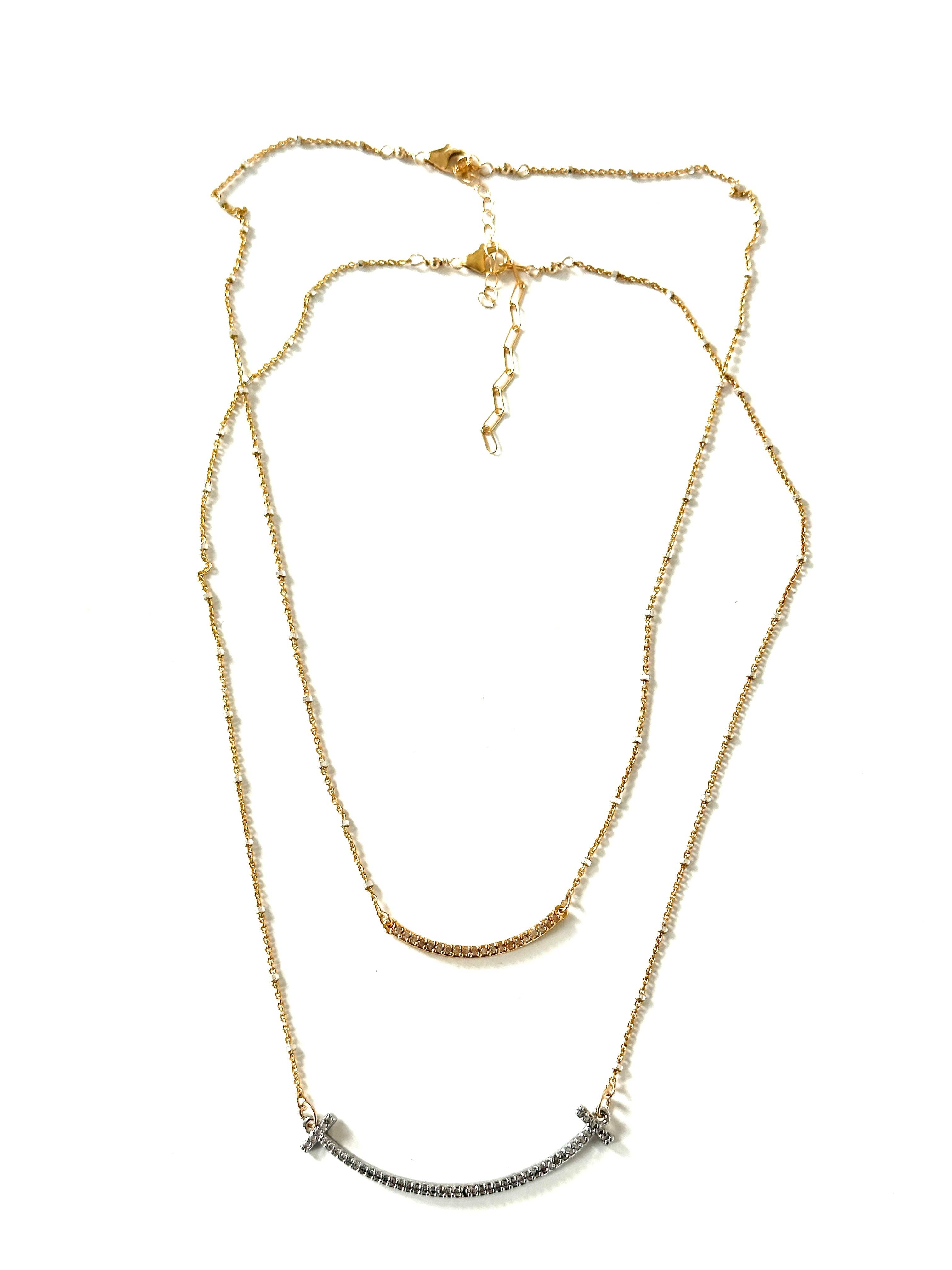 15 - 17" schakelketting van 14k gf en sterling met gebogen cz-hanger