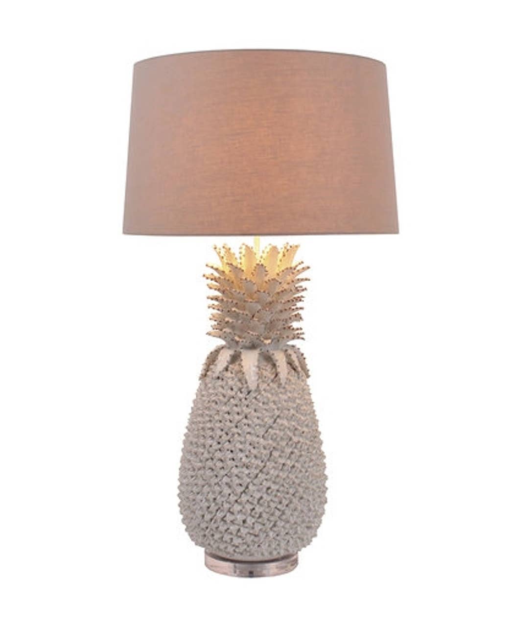 Breng een vleugje tropische charme in uw interieur met deze elegante handgemaakte keramische ananaslamp. Met vakmanschap vervaardigd in Thailand, toont de gedetailleerde keramische voet de schoonheid van een ananas, het symbool van warmte en gastvrijheid. Het gestructureerde lichaam is afgewerkt met een verfijnde glazuurlaag en geplaatst op een transparante ronde voet voor een eigentijdse uitstraling. Afgewerkt met een klassieke stoffen kap, combineert deze lamp ambachtelijke kwaliteit met modern design, waardoor het een veelzijdige blikvanger is voor woonkamers, slaapkamers of halletjes. Specificaties: - Handgemaakte keramische voet – gemaakt in Thailand - Kap: stof, 33 cm bovenste diameter × 35,5 cm onderste diameter × 20 cm hoogte - Voet: 15 cm diameter - Totale lamp hoogte: 53 cm