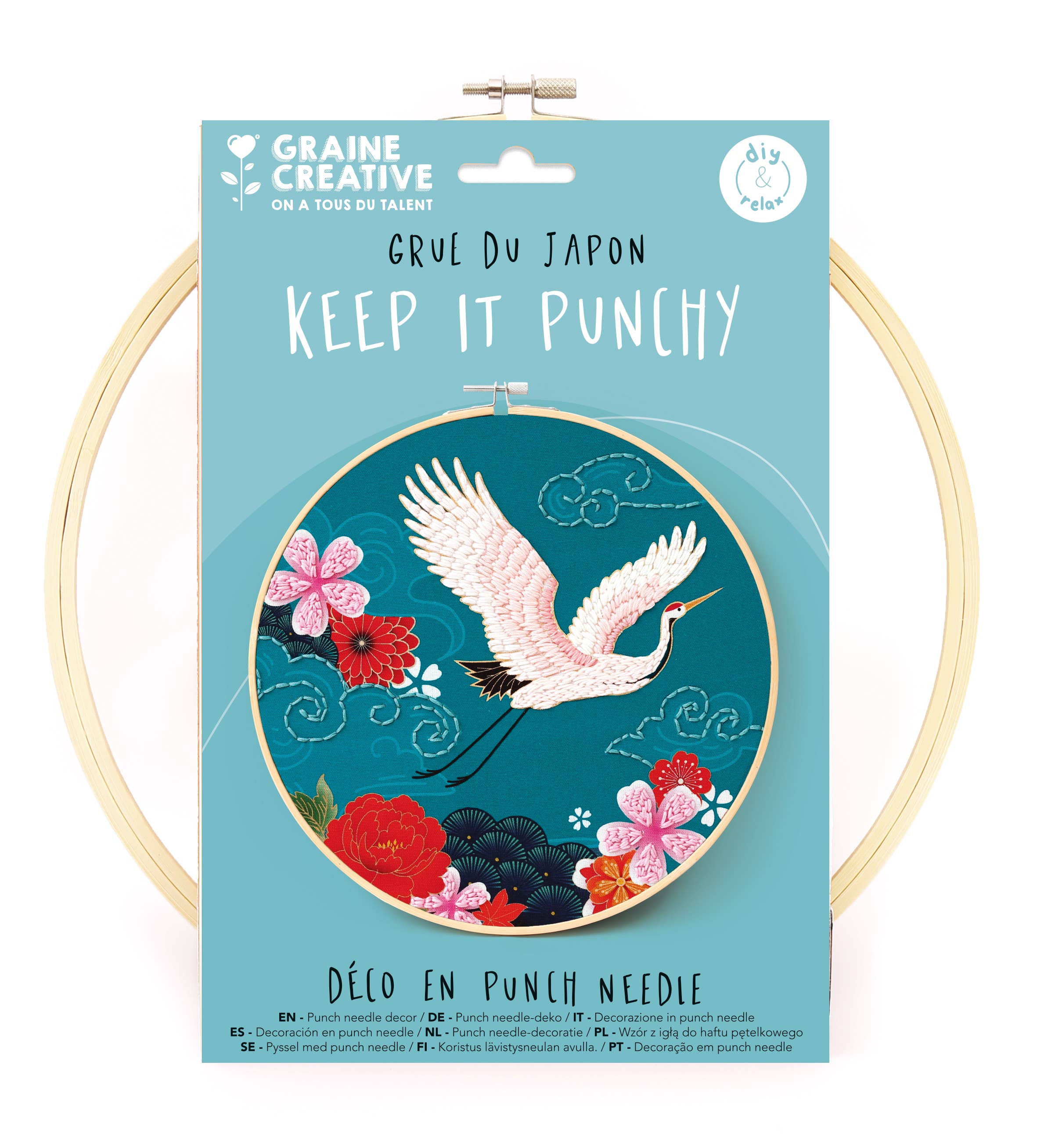 Deze set bevat flosdraad, een hoepel van 5 cm, een naald en instructies. Het ontwerp is perfect voor iemand die voor het eerst wil proberen te borduren door een paar belangrijke steken te leren: ketting en satijnsteek.