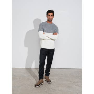 De zijden kasjmier trui met knoop ronde hals. Luxe kasjmier gemengd met coole zijde, handgebreid. Gestreepte elleboogstukken en marineblauwe versieringen. Echte parelmoer knopen en contrasterende gestreepte katoenen stof. Klassiek. Zacht. Draag hem met een poloshirt of een overhemd voor verschillende gelegenheden. * Materiaal: 55% zijde 45% kasjmier * Twisted garens * Gestreepte gebreide elleboogstukken * Geribbelde manchetten en onderkant * Echte shell-knoppen