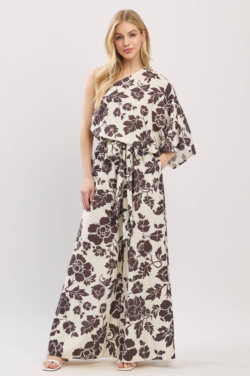 Geweven jumpsuit met geografische print voor dames met zijzak, verstelbare riem en strik van 100% polyester met een verhouding van 2:2:2, gemaakt in China