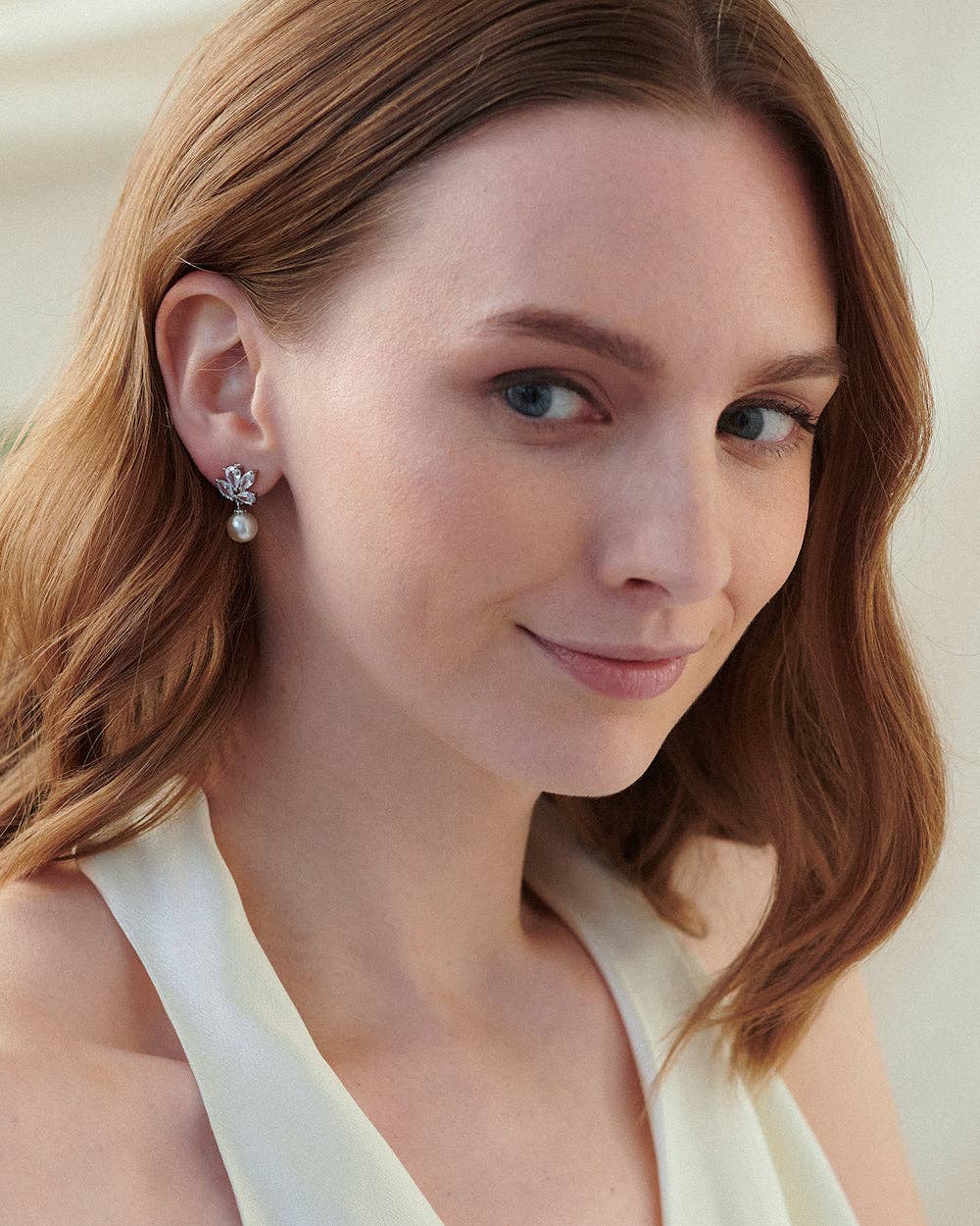 mooie oorbel maar de parel hangt niet recht naar beneden vanaf de clusterstenen......buigt terug