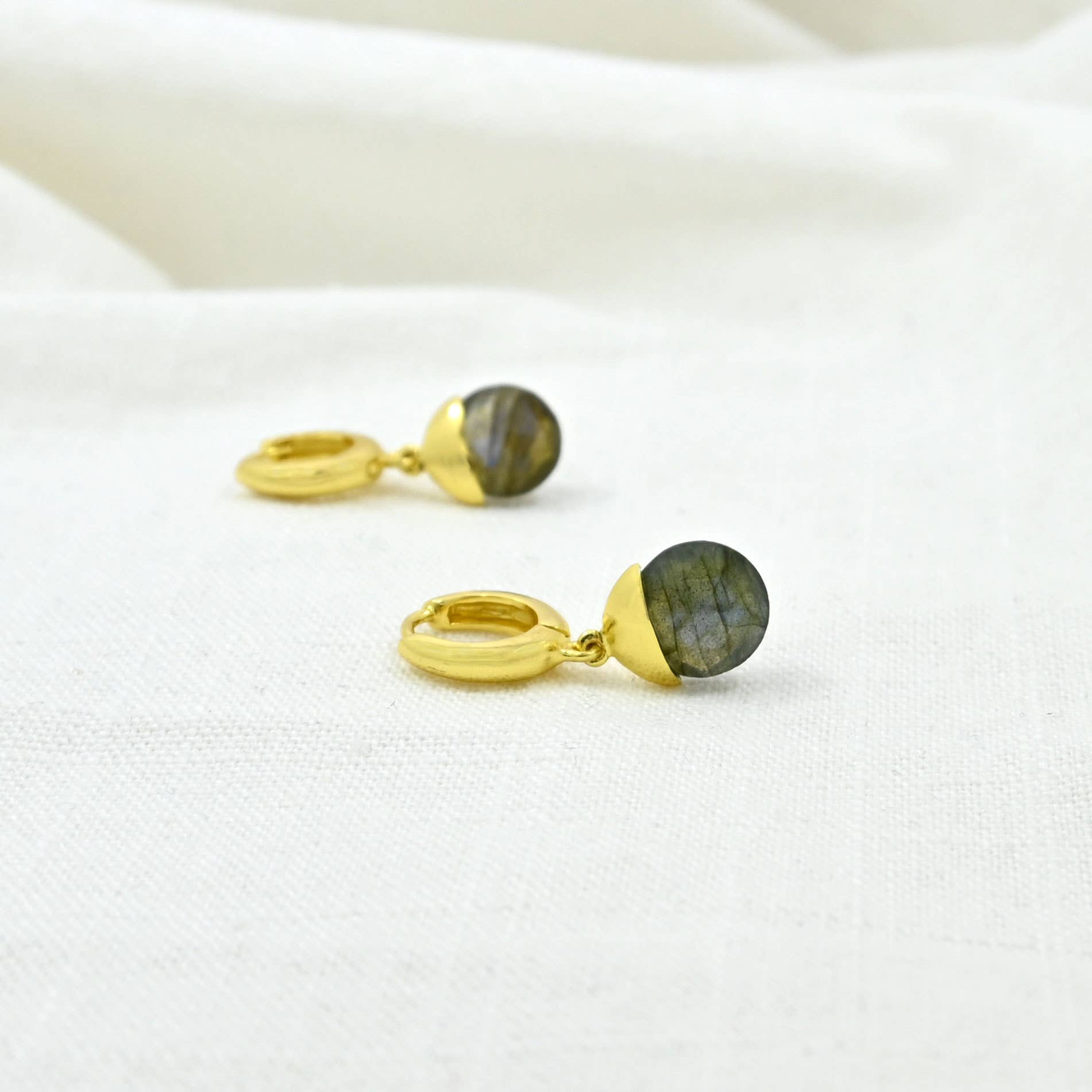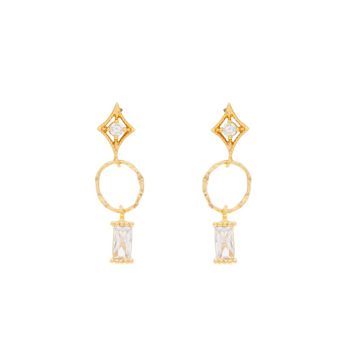 Pavé zirkonia geven alledaagse schittering aan deze eenvoudige maar chique oorbellen in huggie-stijl. *Vergulde zirkonia *Sterling zilveren palen * Alle oorbellen worden geleverd op hergebruikt leer voor elegant en gemakkelijk