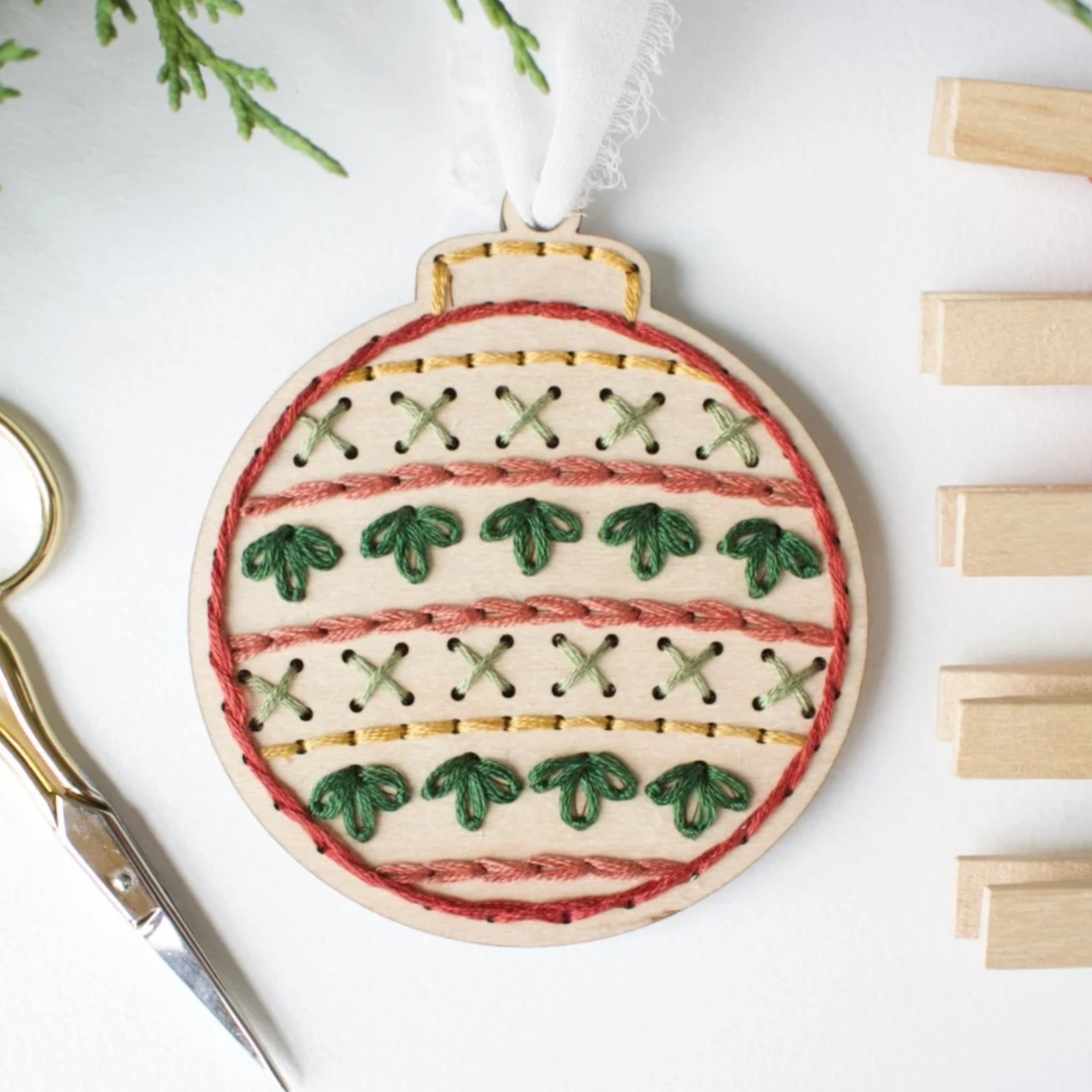 DIY-kit voor borduurwerk met kerstboomversiering