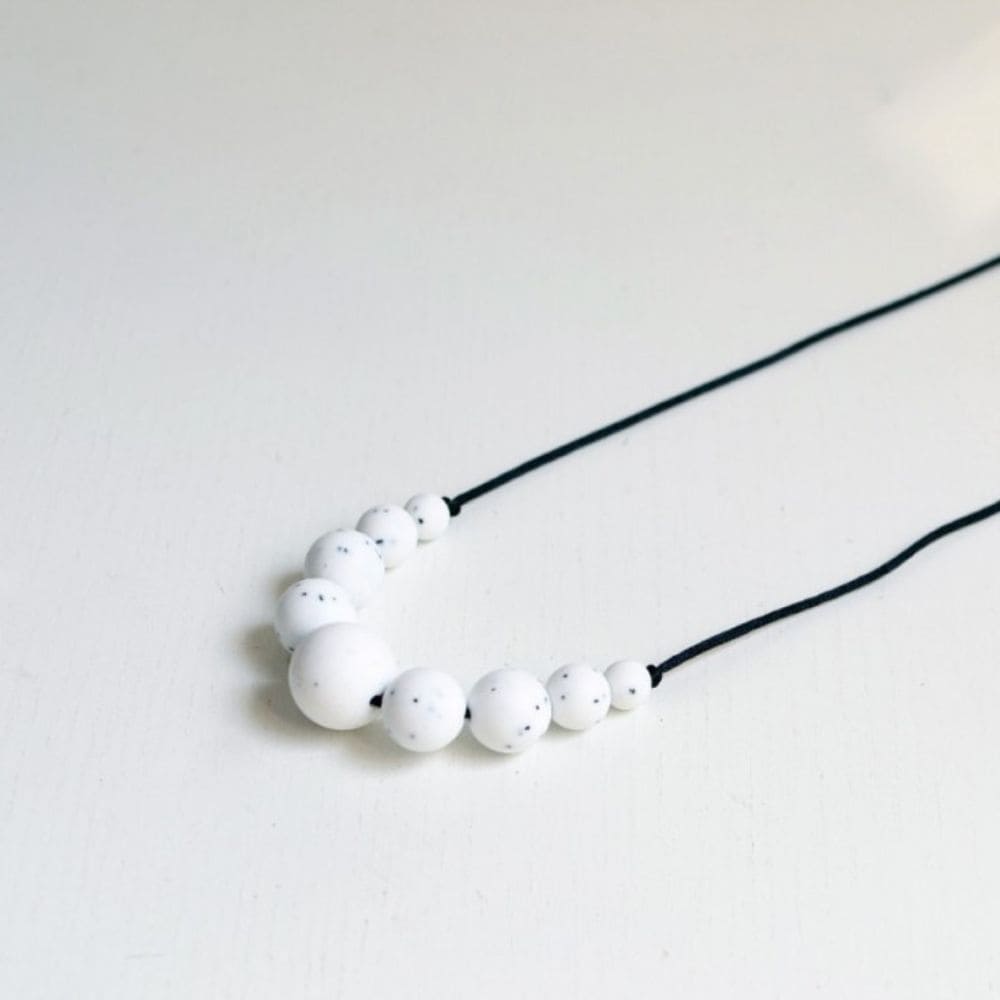 Deze prachtige mama-hanger is speciaal gemaakt voor baby's die tandjes krijgen. De combinatie van beukenhout, siliconen en metalen veiligheidskralen zorgt voor alle texturen om op te kauwen en geeft elke outfit stijl! Deze ketting is ook voorzien van een drukknoop om veilig te dragen en een beetje meer stijl toe te voegen aan je kinderziektes. Al onze producten zijn gemaakt van BPA-siliconenkorrels, net als flesspenen en babyspeelgoed. Halskettingen worden standaard geleverd met een dikte van ongeveer 24 cm. Zie de tabel en voeg een briefje toe om te bestellen als je een andere maat nodig hebt. Alle componenten zijn getest en gecertificeerd door een Brits testcentrum volgens de EN71-normen. Het waxkoord geeft een perfecte afwerking aan het ontwerp. Voorbeelden van personalisatie beschikbaar in afbeeldingen.