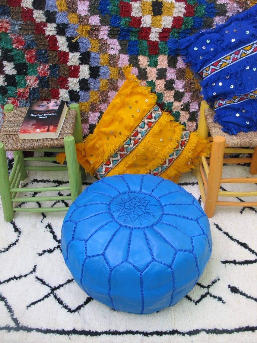 Het volnerfleer van lamsleer en het traditionele Marokkaanse ontwerp maken deze poef tot een prachtig meubelstuk voor in huis. Of u het nu gebruikt als zitplaats, voetenbank of als tafeltje voor uw favoriete boek, deze poef past overal bij. Handgemaakt op bijna dezelfde wijze als een eeuw geleden, met traditionele gereedschappen. Elke leren laag wordt geverfd of gelooid, in ronde vliegervormen gesneden en vervolgens zorgvuldig met de hand vastgenaaid met nylon draad. Dit geeft de poef zijn sterke, mooie, ronde 'pompoenvorm'. Productgegevens: - 100% leer - Handgemaakt - Ritssluiting - Ongeveer 50 x 30 cm