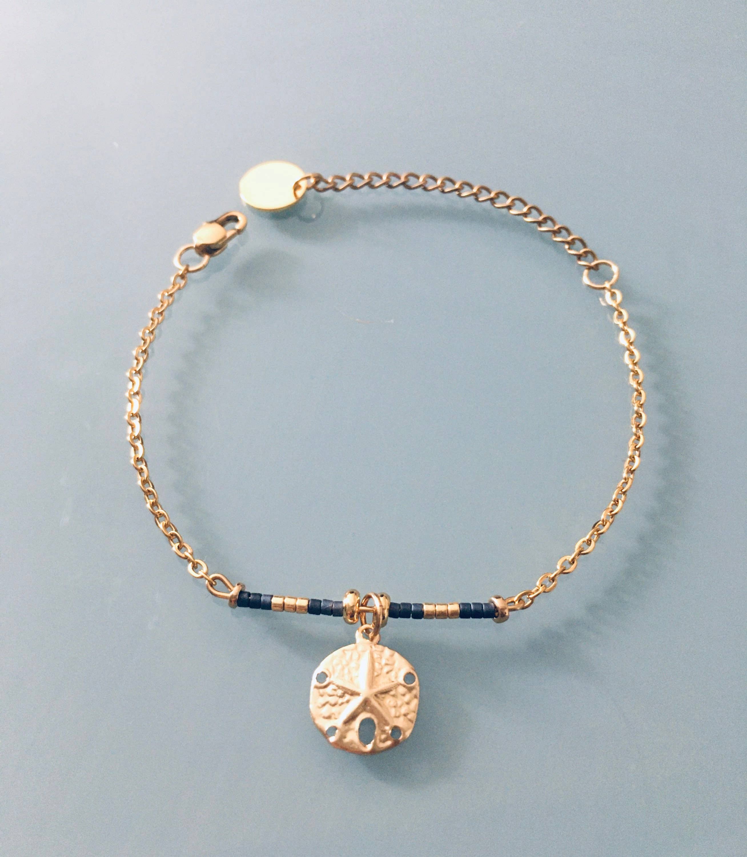 Armband met amulet en parels, goud vergulde Heishi kralen