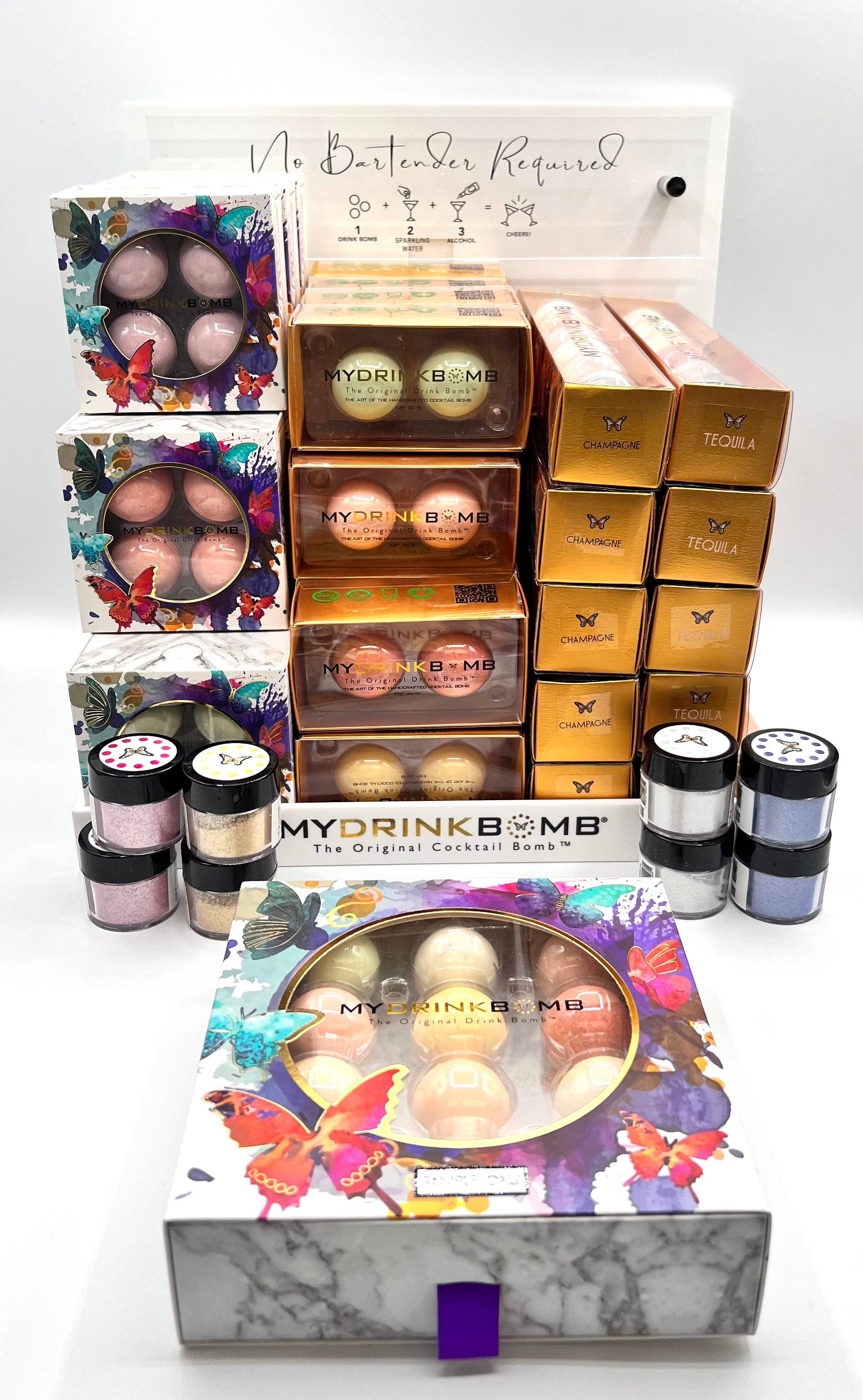 Onze bestseller! Probeer een proefpakket van onze 6-pack Drink Bomb™ mix of kies voor Champagne Bomb™, Vodka Bomb™ of Tequila Bomb™ – perfect voor ginliefhebbers! Beschikbare pakketten: • Mix 6: Margarita Bomb™, Cosmo Bomb™, Prosecco Rose Bomb™, Piña Colada Bomb™, Bellini Blush Bomb™, Hangover Bomb™ • Champagne Mix: Bellini Blush Bomb™, Champagne Bomb™, Prosecco Rose Bomb™, Mimosa Bomb™, Passievrucht Bomb™, Hangover Bomb™ • Tequila Mix: Margarita Bomb™, Strawberry Margarita Bomb™, Mango Margarita Bomb™, Spicy Margarita Bomb™, Hibiscus Bomb™, Hangover Bomb™ • Vodka Mix: Cosmo Bomb™, Lychee Martini Bomb™, Sour Apple Martini Bomb™, Limoncello Bomb™, Hangover Bomb™ Kersteditie: • Peppermint Twist • Sugar Plum • Gingerbread • Cranberry Orange • Poinsettia • Naughty Hangover Smaken kunnen variëren.