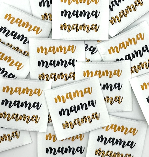 Beige geweven labels met de inscriptie "mama" om op kleding te naaien. Ze rafelen niet en geven een finishing touch om creaties af te maken of een kledingstuk te personaliseren. Ze kunnen ook een scheur of vlek verbergen!