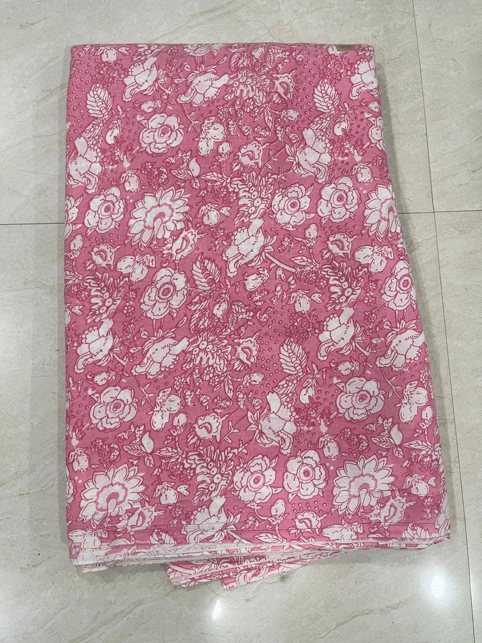 Handbedrukte stof voor in de tuin met anjers, 10 meter