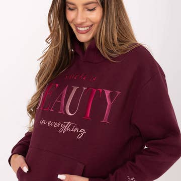 Kastanjebruine lichtgewicht hoodie met trechterhals voor dames met paddenstoelenvaren