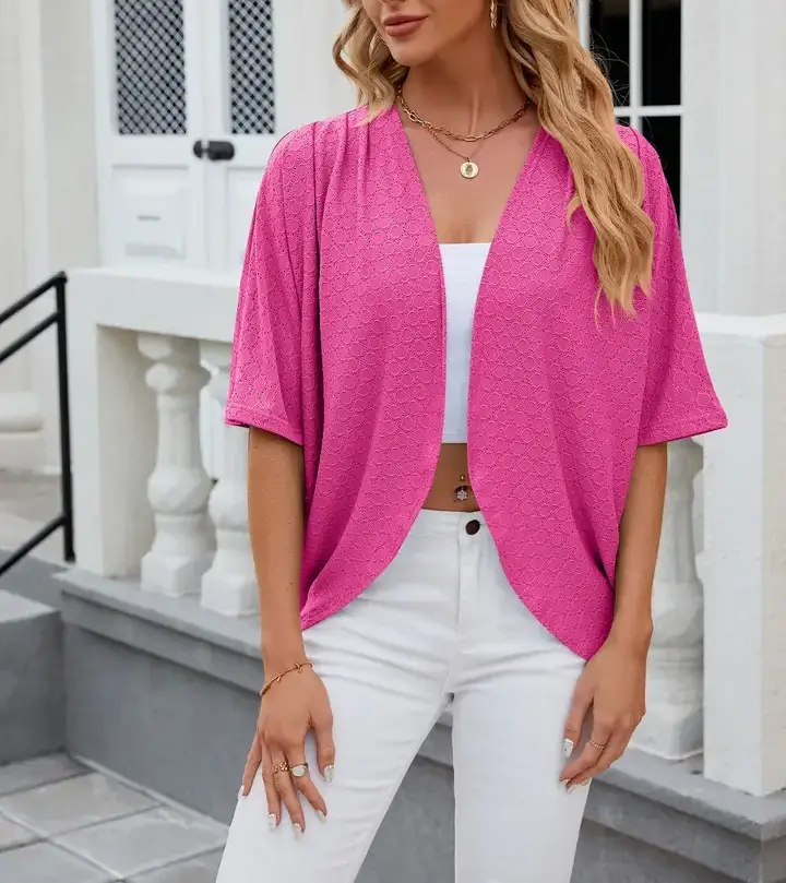 Klaar om te verzenden / Versnelde verzending Elegante geschulpte rand en slanke silhouet geven dit V-hals vest een zachte, vrouwelijke uitstraling die perfect is om over tanktops of jurken te dragen. Gemaakt van een ademende mix van ijszijde en katoen, voelt de stof glad en koel aan op de huid, ideaal voor lente- en zomerkleding. Voorzien van een volledige knoopsluiting aan de voorkant en geribde boorden en zoom, wat zorgt voor een veilige maar flexibele pasvorm die gemakkelijk chic of casual te dragen is. Dit lichte vest met lange mouwen combineert moeiteloos met jeans, rokken of shorts. Geweldig voor casual dagen, kantoorlagen of ontspannen weekenduitjes. Verkrijgbaar in meerdere maten, waaronder S, M, L en XL, ontworpen om verschillende lichaamstypes te flatteren met een comfortabele en stijlvolle pasvorm.