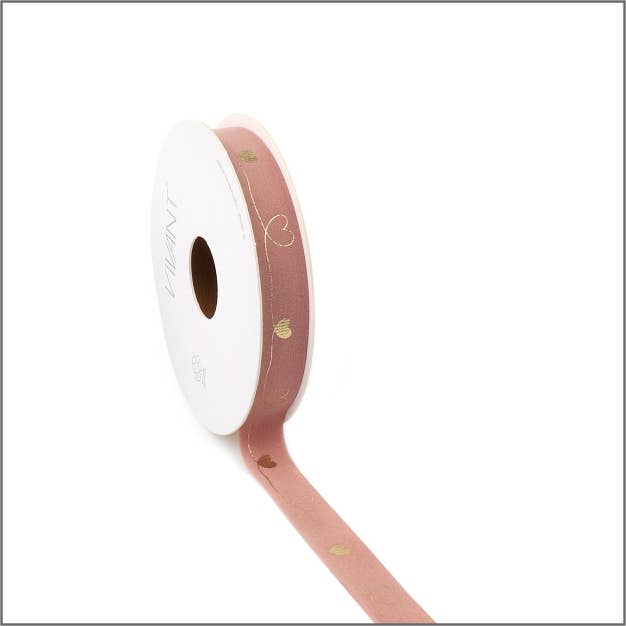 Satijn lint – Harten Aantal meters: 25 meter Lint breedte: 15 mm Kleur: oud roze - nude Druk: goud Ontdek de weelde van onze satijnen decoratie linten met een vleugje emotie. Perfect voor het verfraaien van geschenken, bloemstukken en DIY-projecten. Laat je creativiteit bloeien terwijl je onze luxueuze satijnen linten gebruikt, elk met een wens tekst om je boodschap met stijl over te brengen.